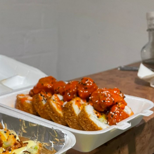 PD: Camarón, fila, pepino y aguacate. PF: Boneless y salsa a elegir.