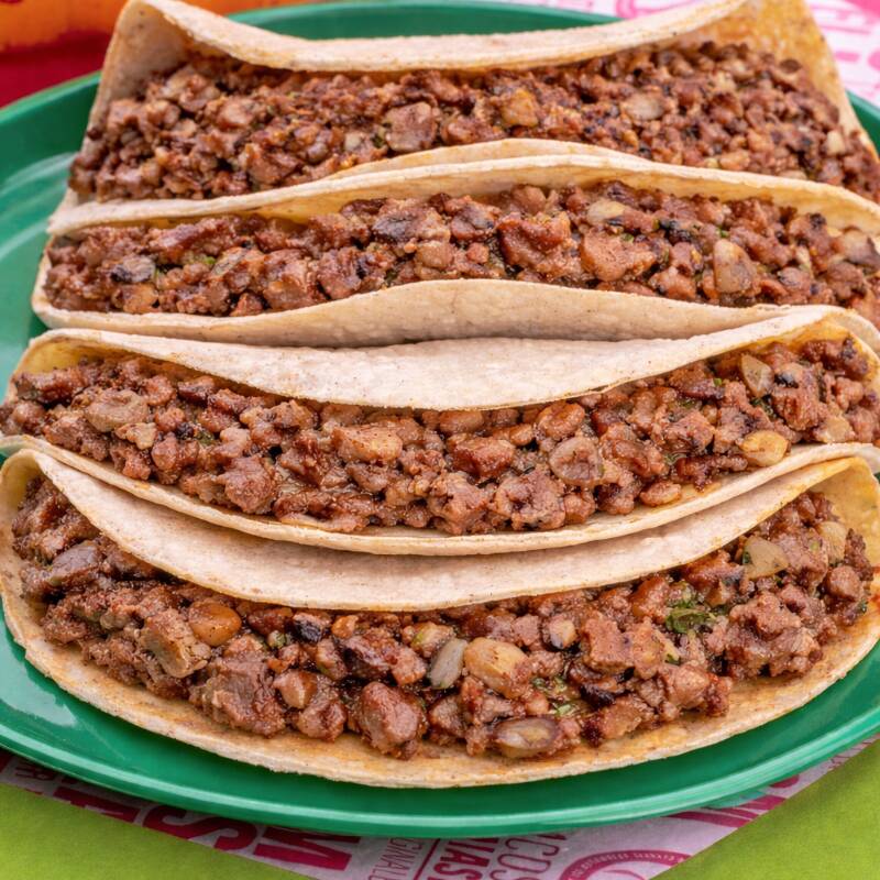 3 taquitos de carne y 1 de frijol