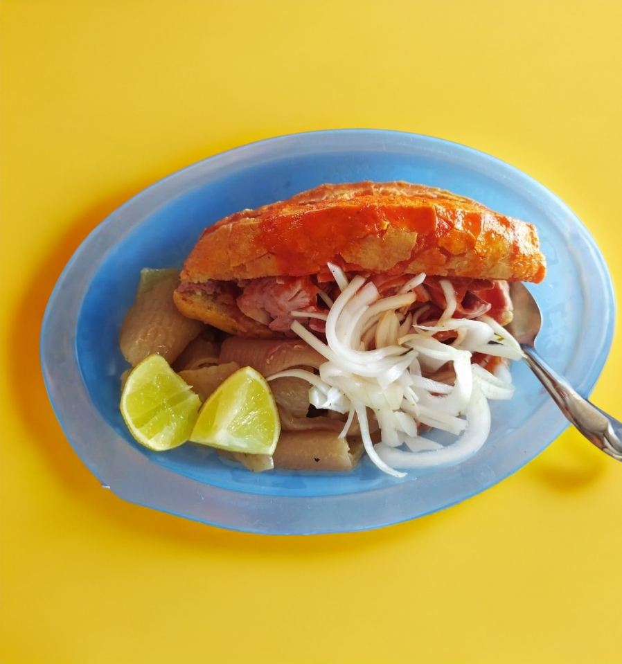 Torta Ahogada Surtida de Carne, Buche, Lengua, Cuero, Cachete y Oreja