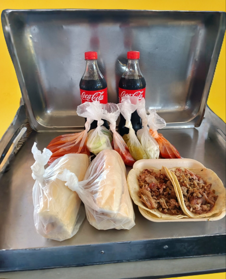 2 Taco de Carnitas, 2 Torta Ahogada de Carnitas y 2 Coca Cola
