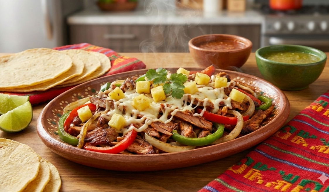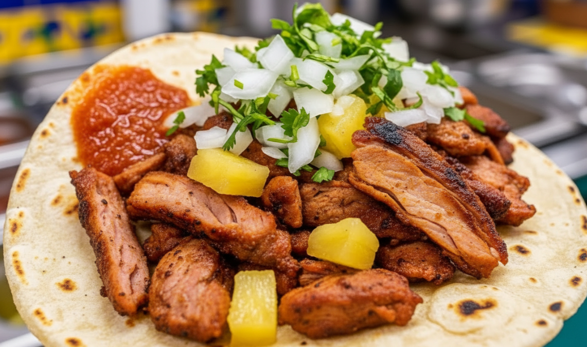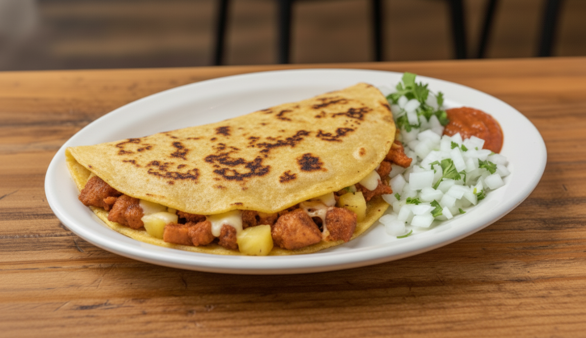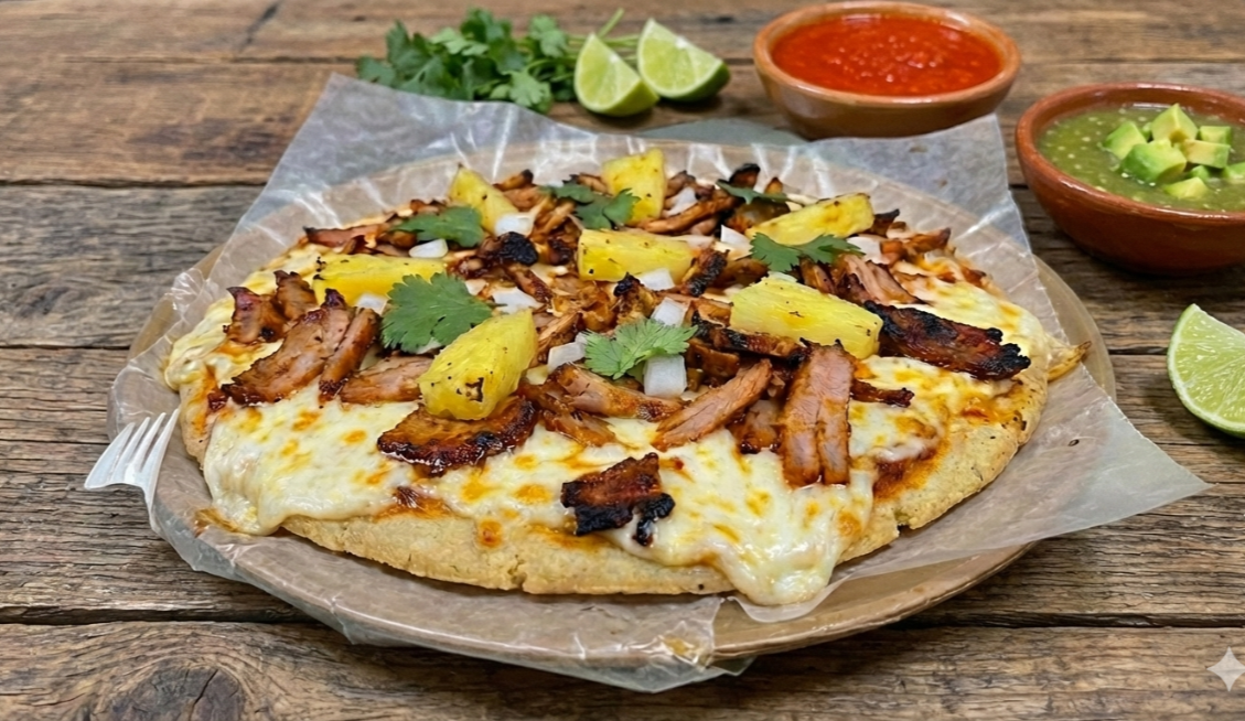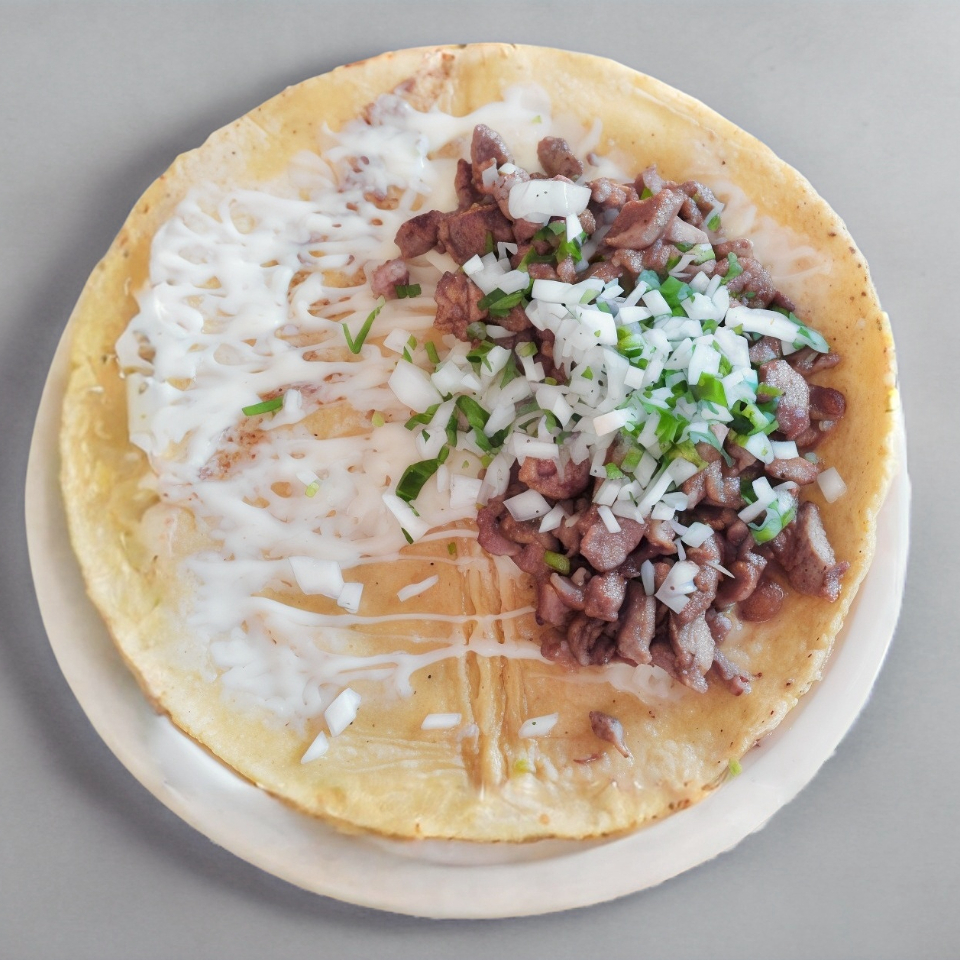 Carne de Pastor acompañada de Cebolla, Pimiento Verde y Queso (No se cambian ingredientes)