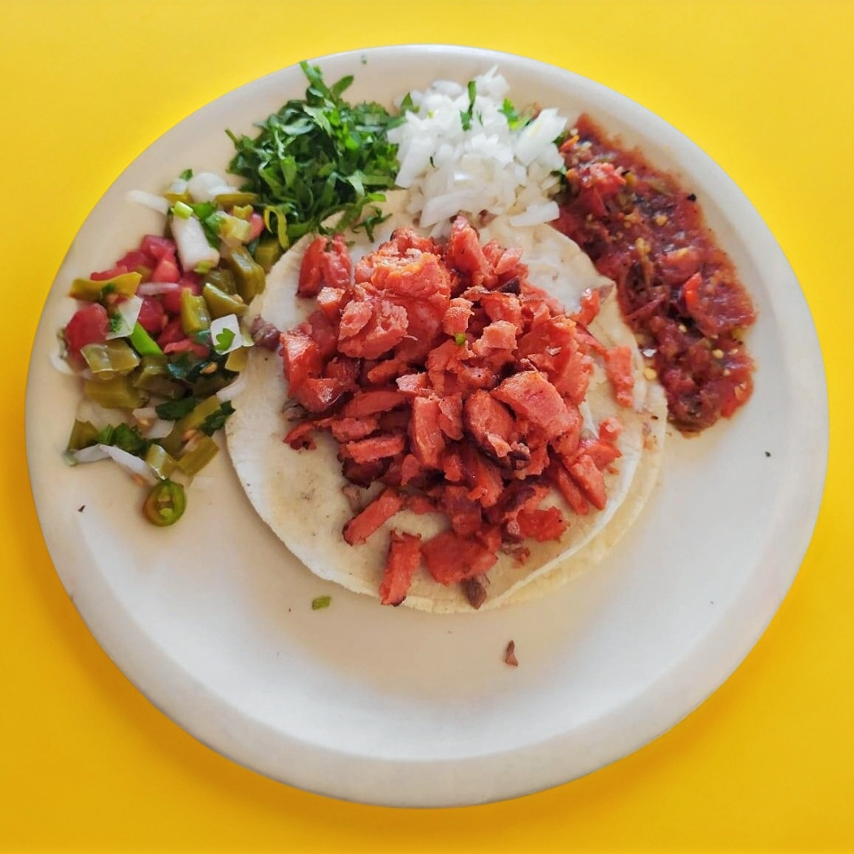 2 Taco de Surtido y 1/2 Agua de Horchata de Fresa (Rosa)