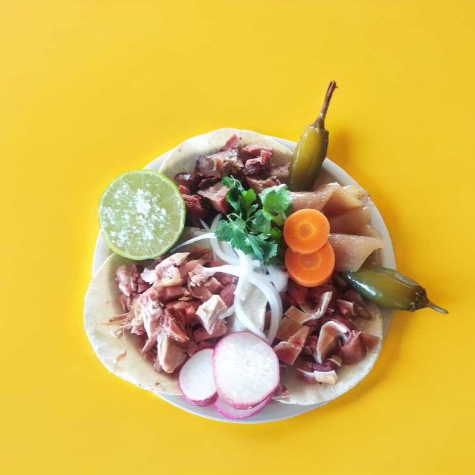 Tacos Surtido de Carne, Buche, Lengua, Cuero, Cachete y Oreja