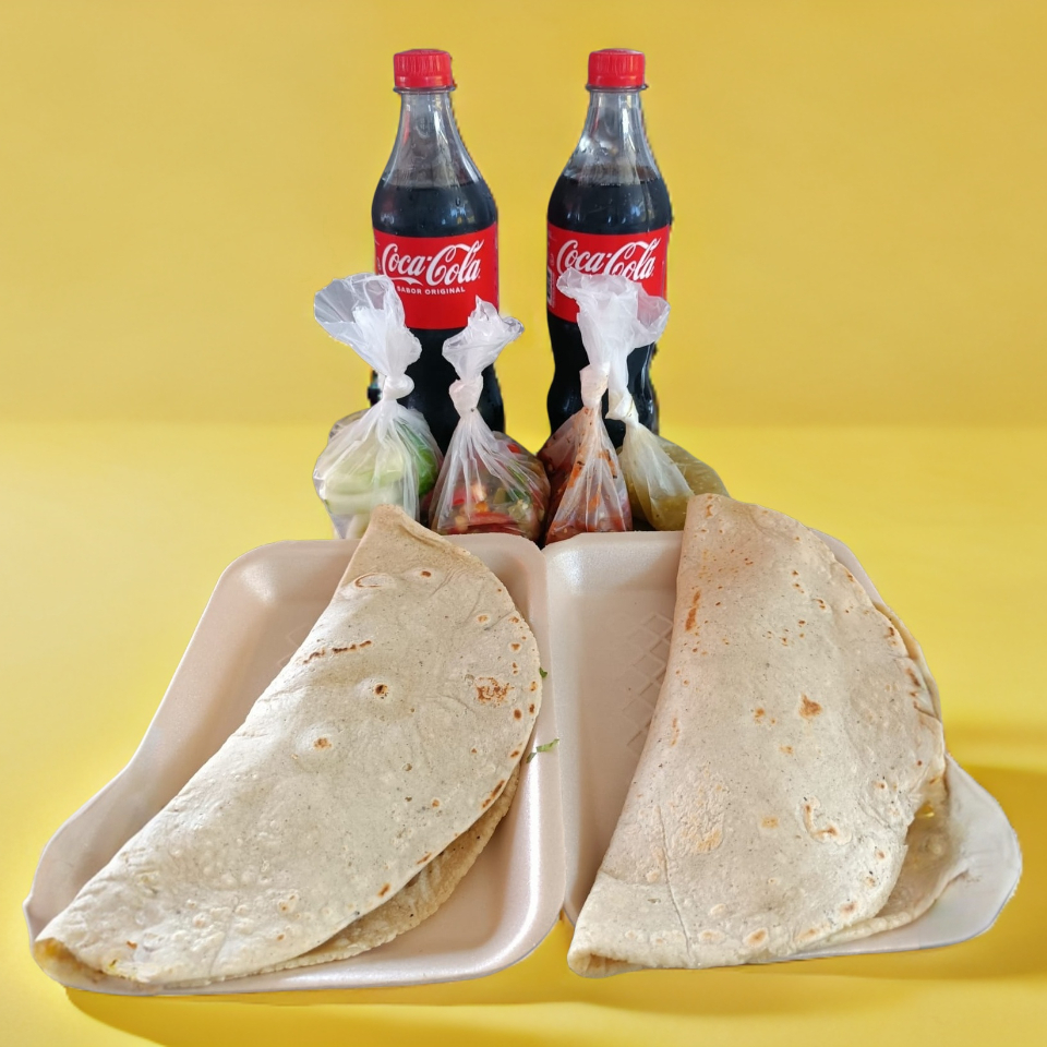 Paquete Coca Cola + tacoS de Asada y Chorizo