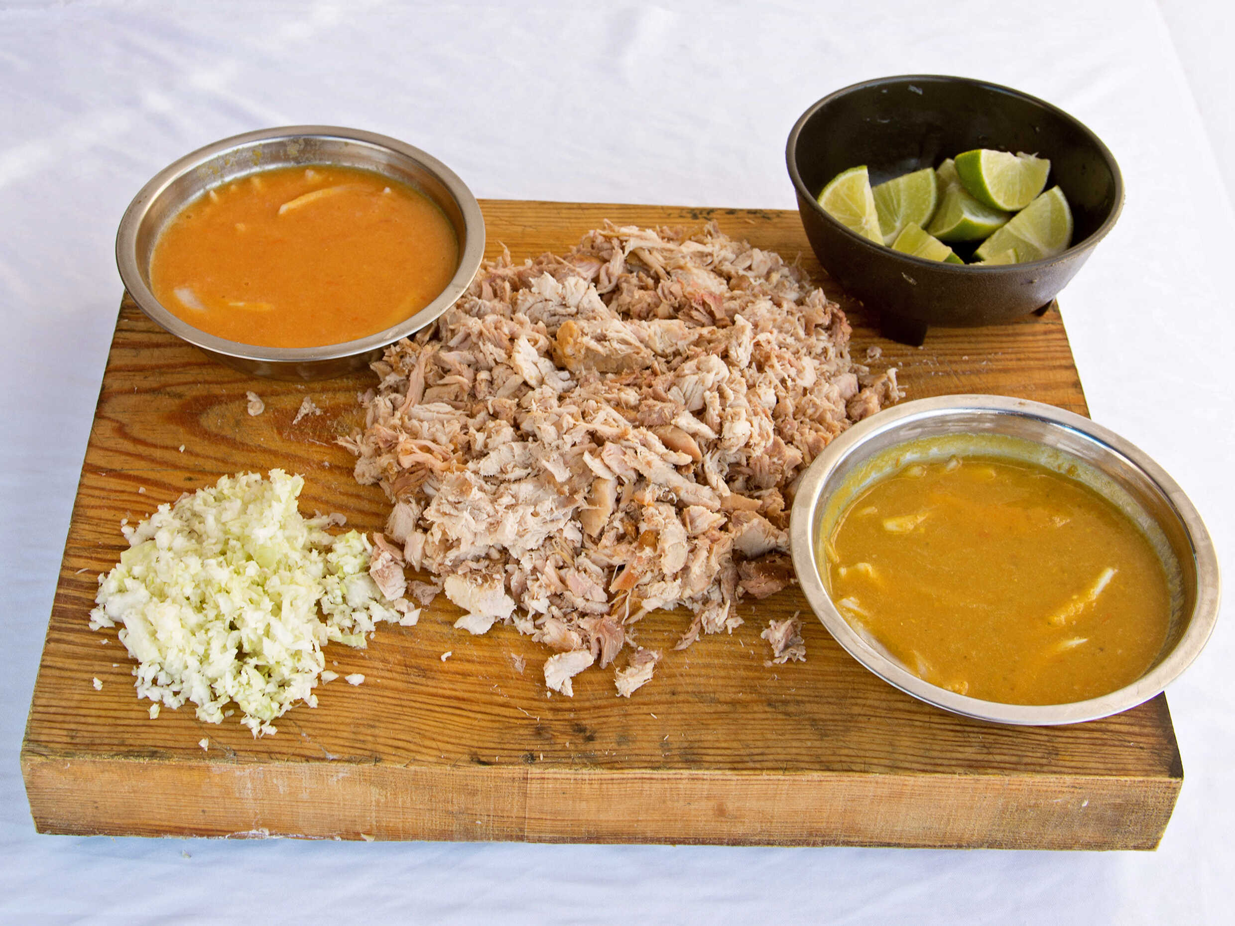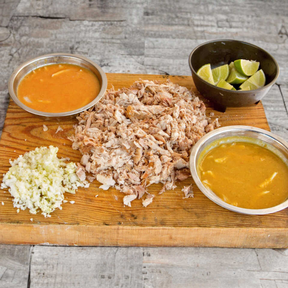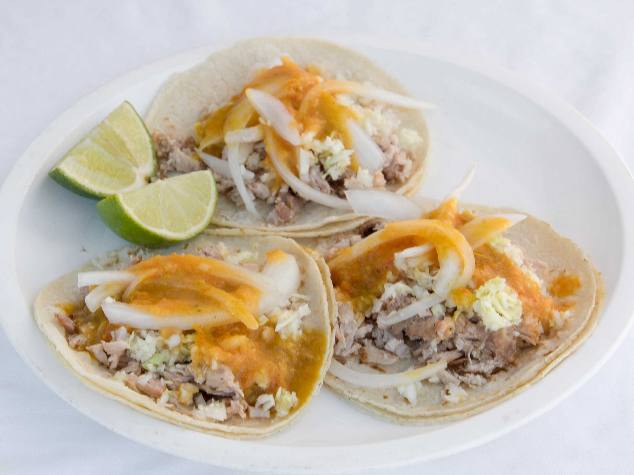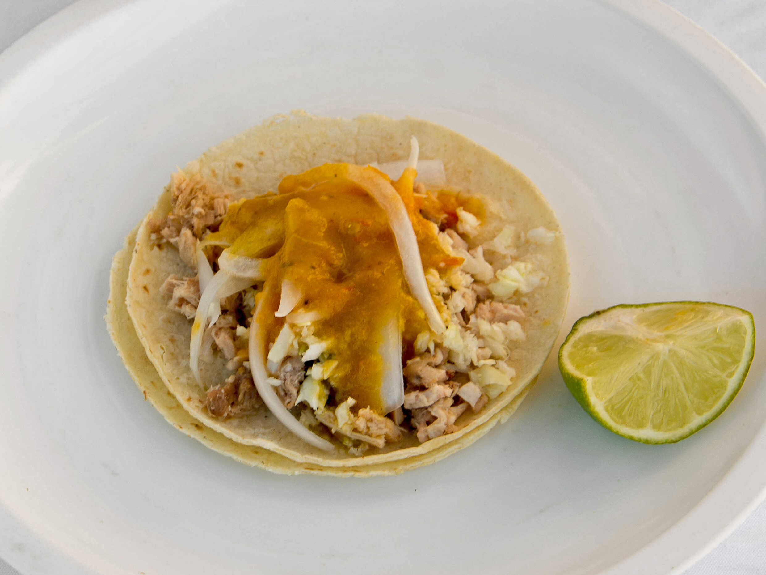 Repollo, salsa suave, salsa picante y limones aparte.