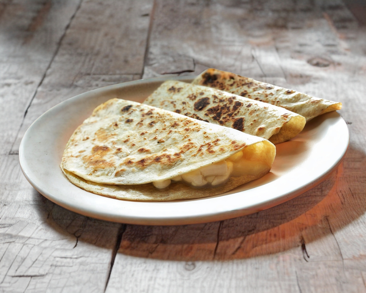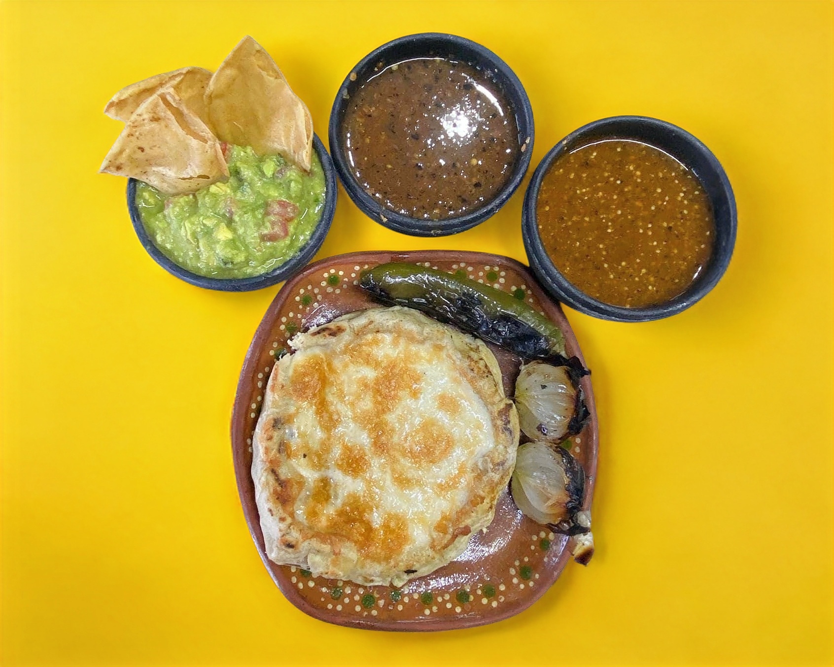 quesadilla de tortilla de maíz con queso fundido y tripita