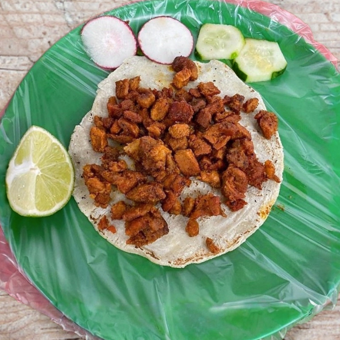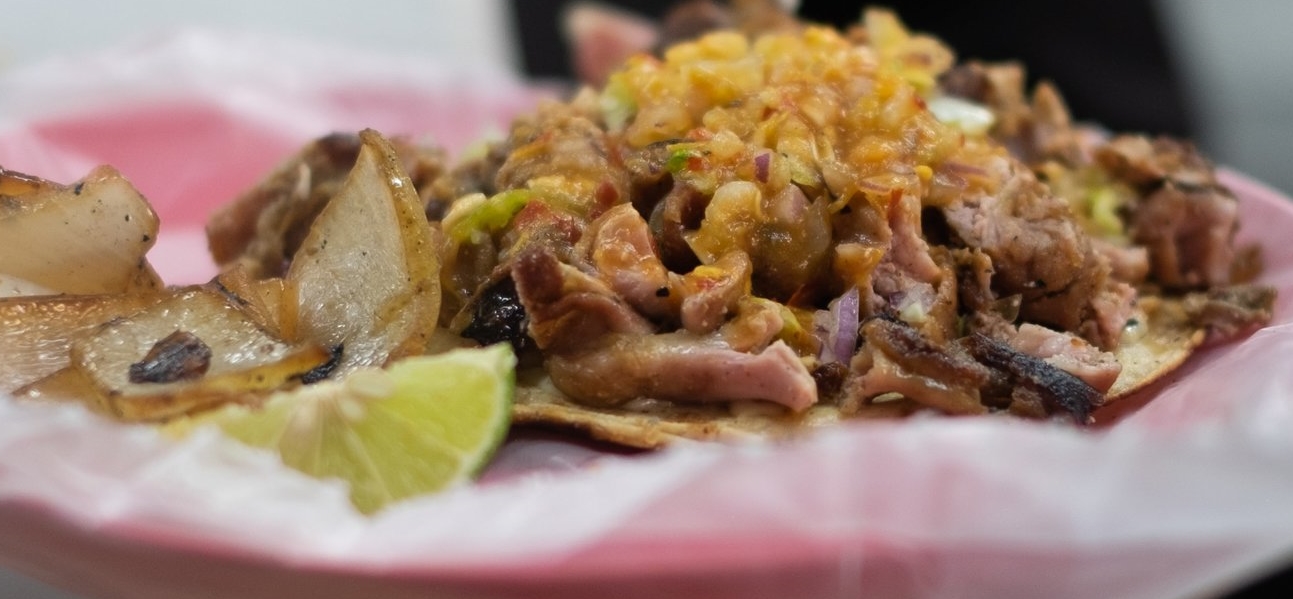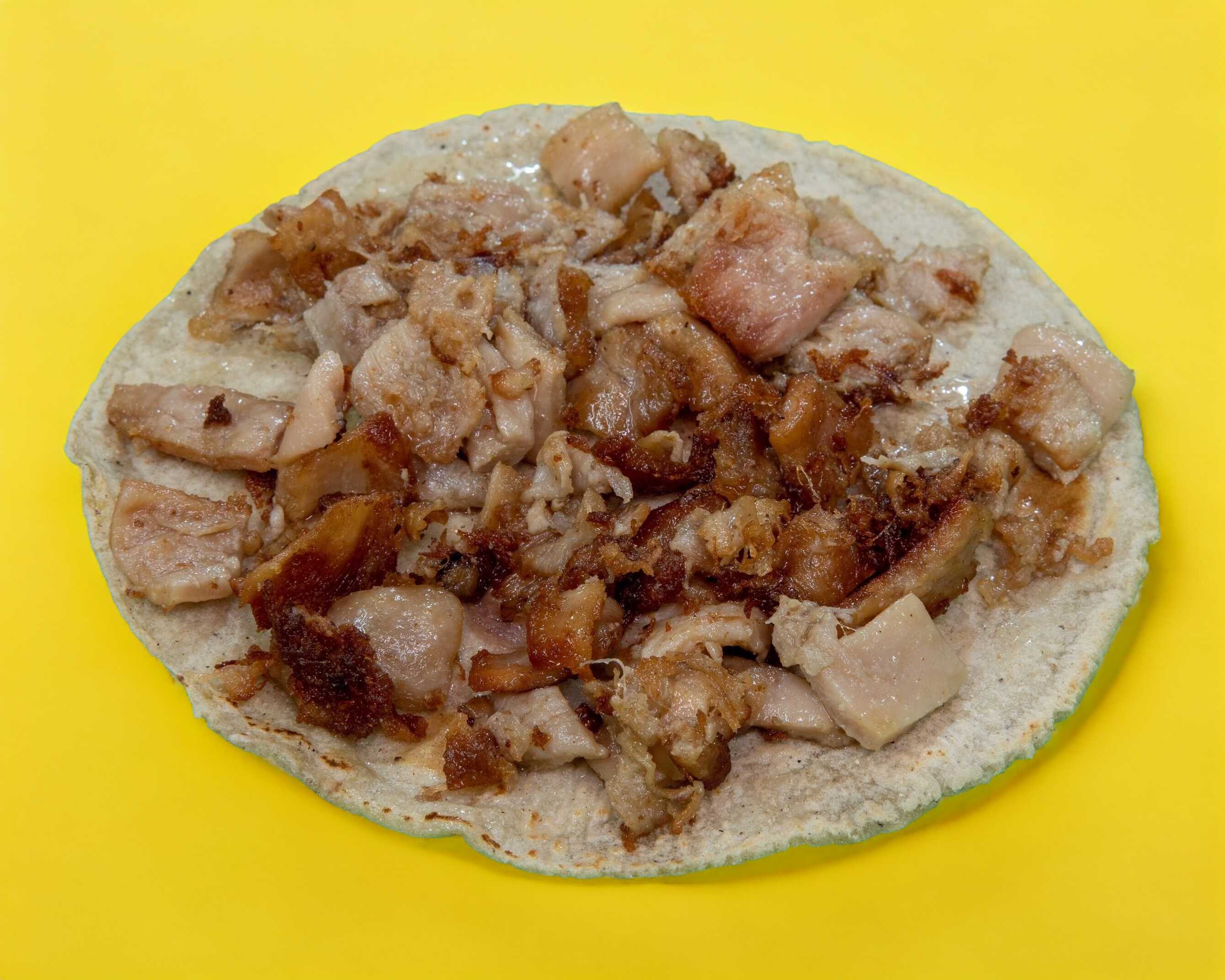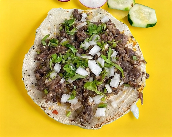 taco de tortilla de maíz con una combinación de carne y chorizo asados al carbón
