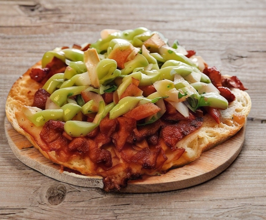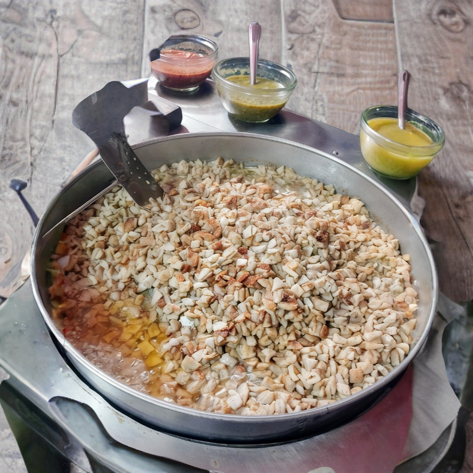 tortilla dorada de maíz con queso fundido y deliciosa tripita
