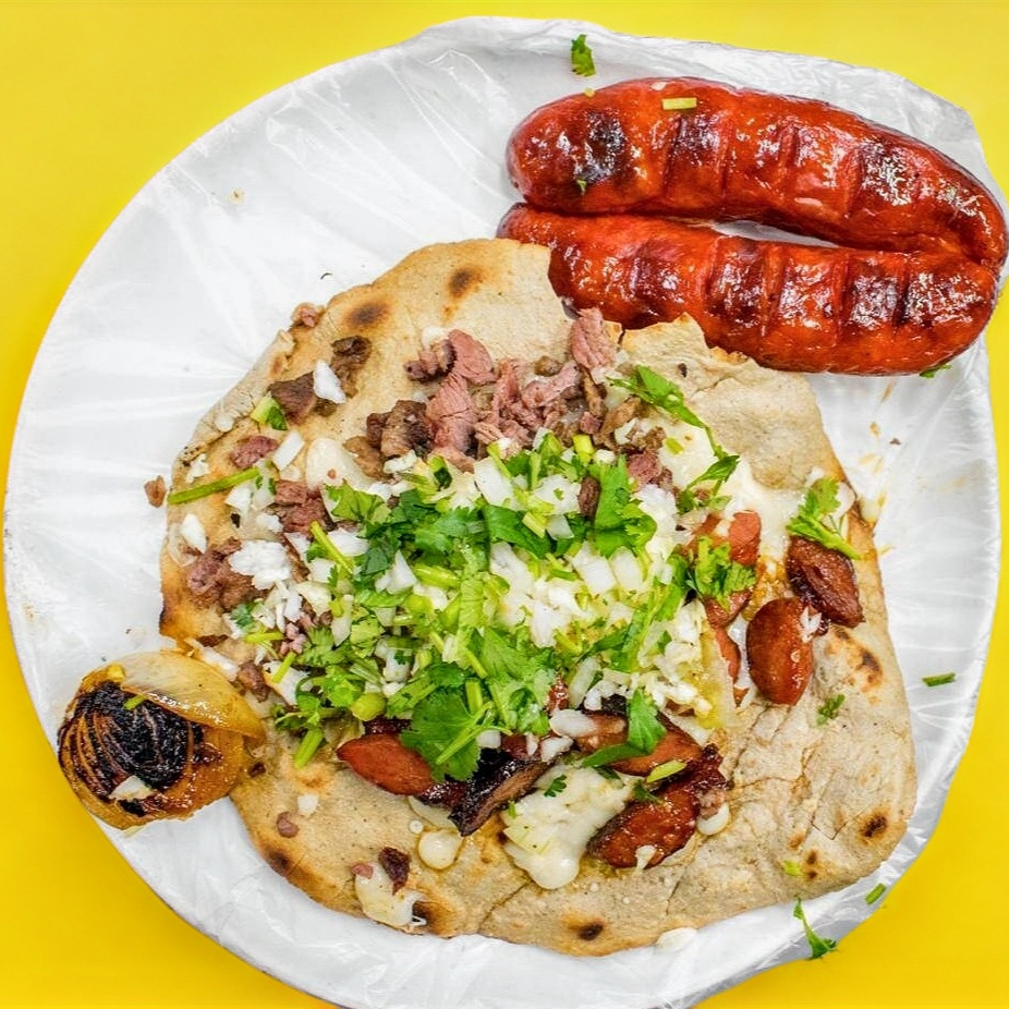 Con carne asada, panela y chorizo corona. *Preparados con: Crema, Mayonesa, Ketchup, Mostaza, Jitomate, Cebolla y Chile Jalapeño.