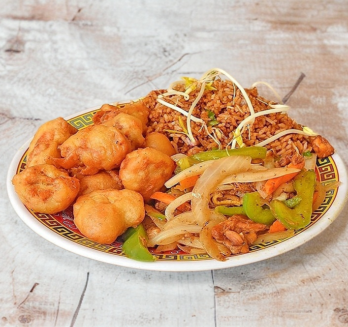 2 porciones de Arroz + 2 guisos + 1 CHUN KUN + TÉ