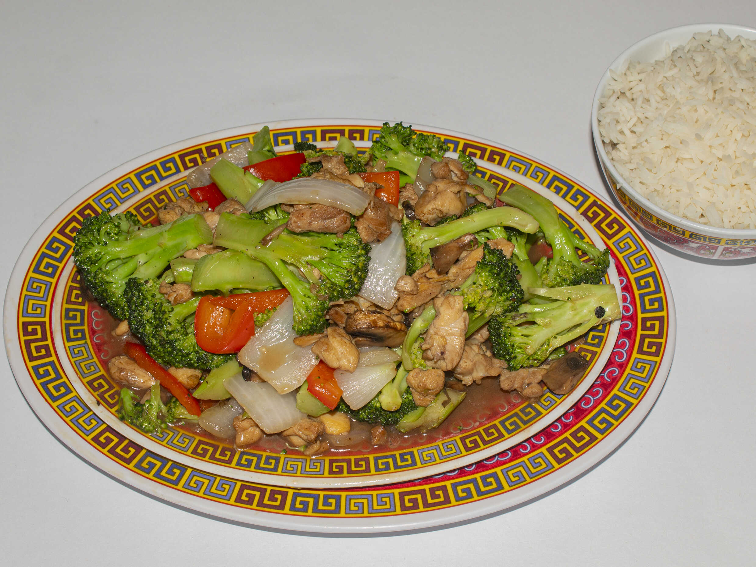 (Brócoli, cebolla, morron rojo,pollo).