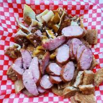 Bolillo, pierna de cerdo preparadada, jamon, queso amarillo, lechuga, jitomate y cebolla