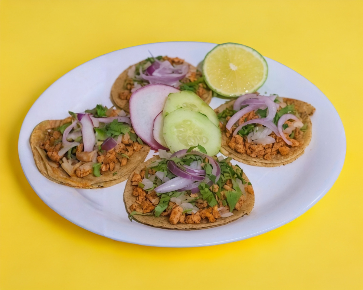 Tortilla de Maiz con Adobada 30 gr. acompañada de cebolla, cilantro y repollo