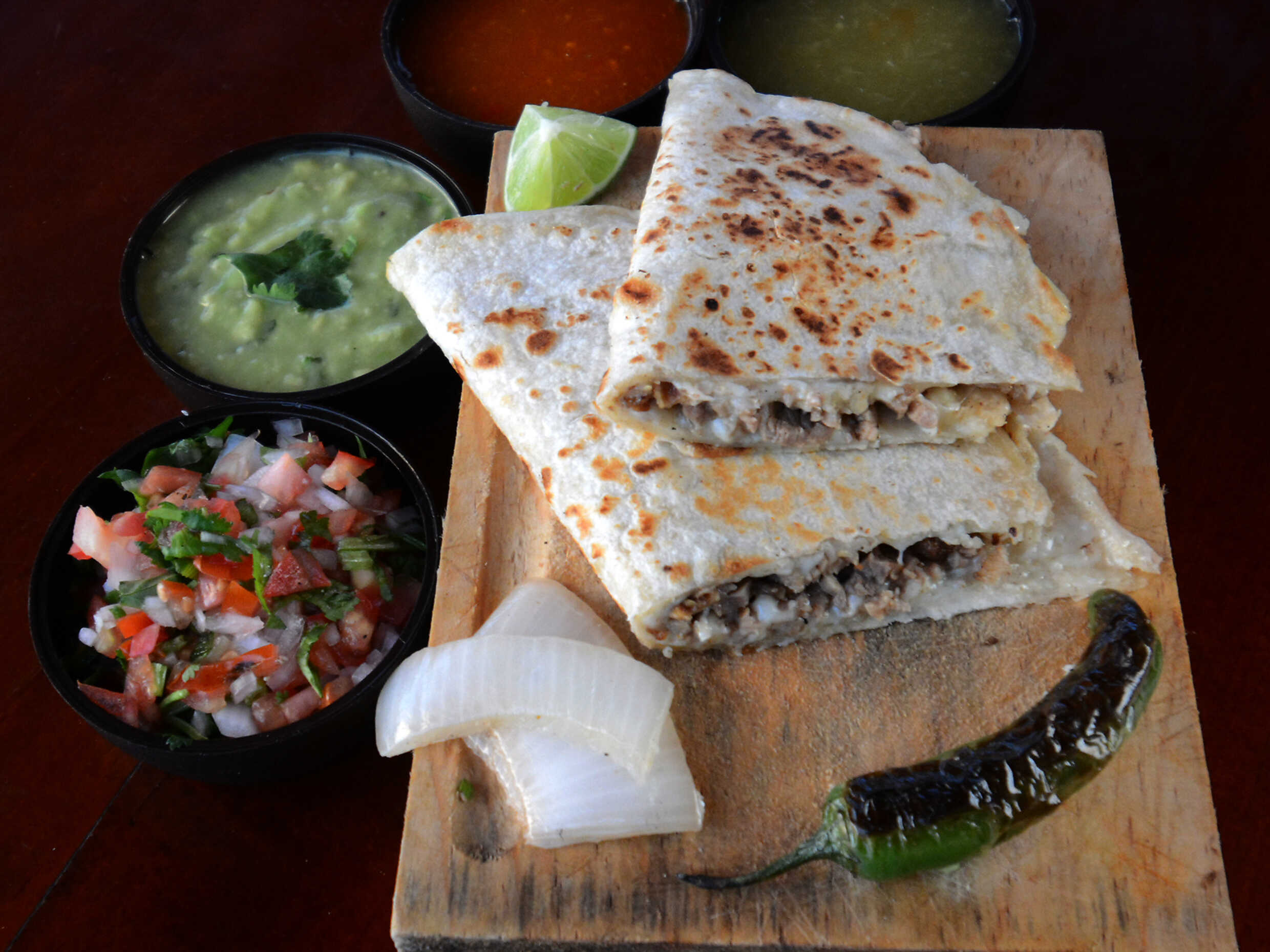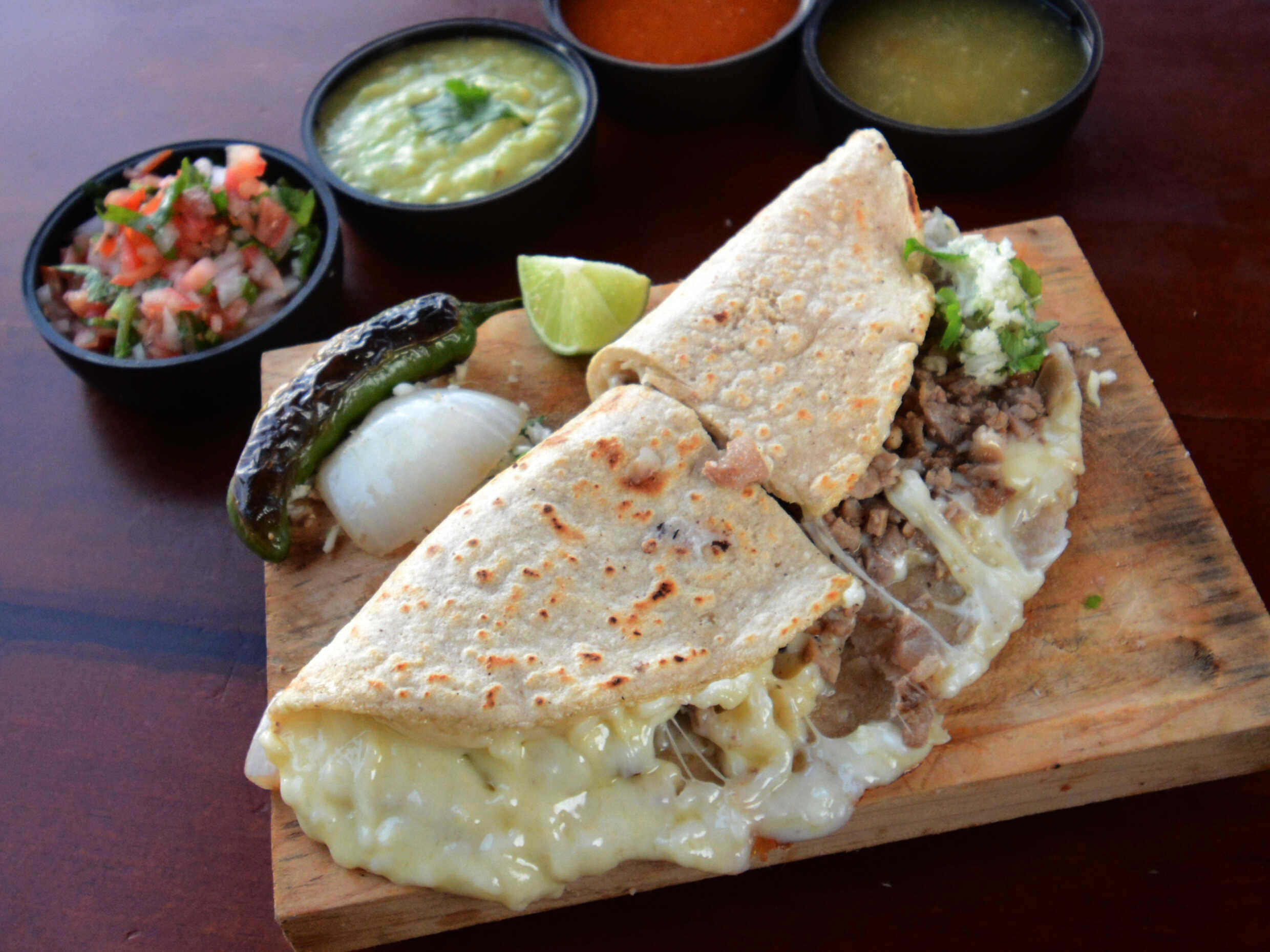 Deliciosa quesadilla con tortilla hecha a mano lista para disfrutarse.