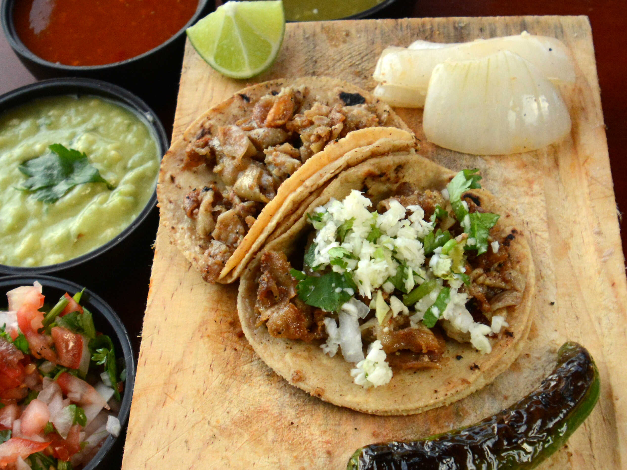 Delicioso taco de cabeza doble tortilla.