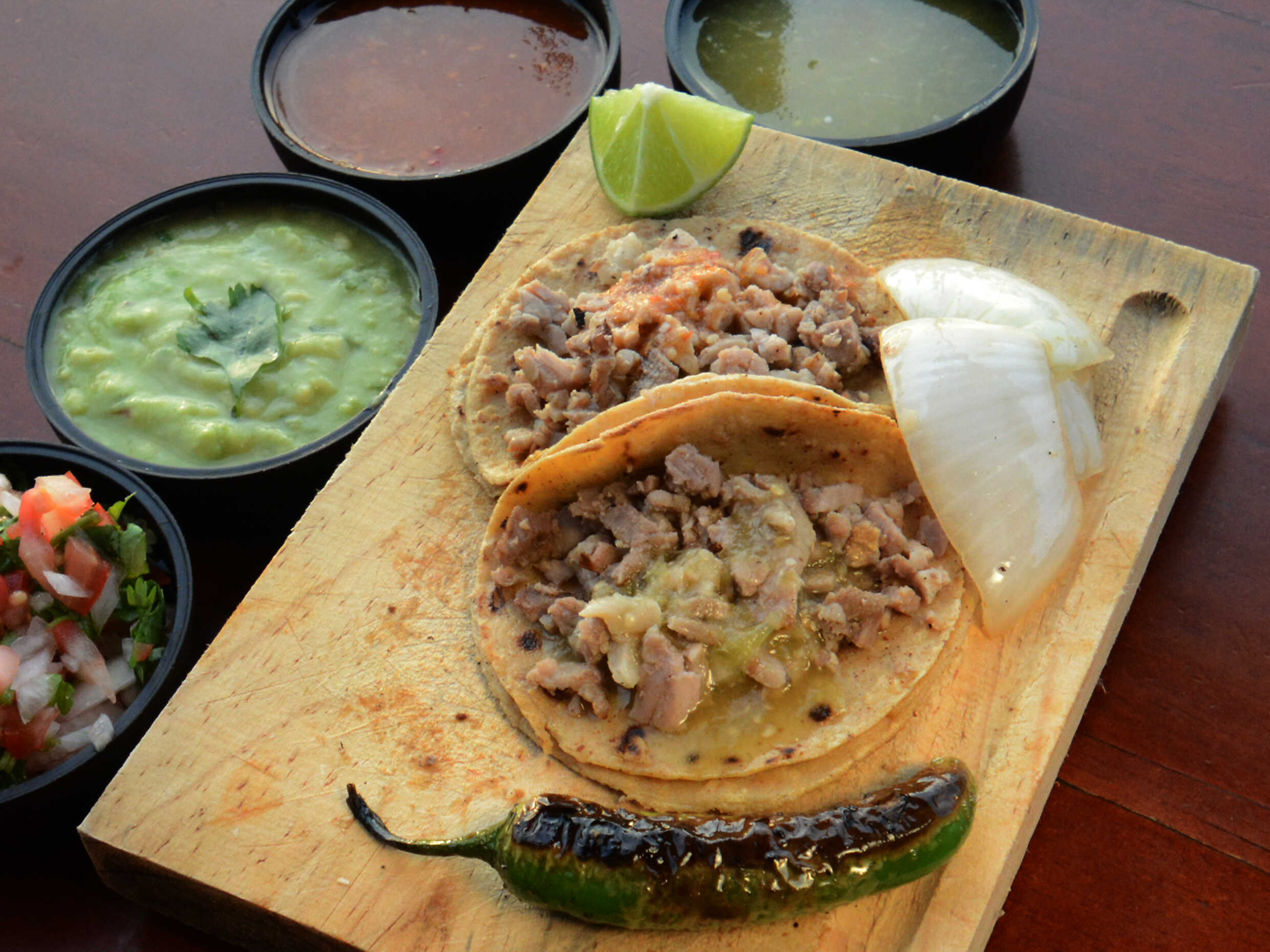 Delicioso taco con doble tortilla en tamaño chico, calentado al comal, listo para disfrutar.