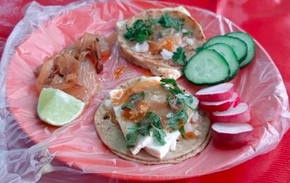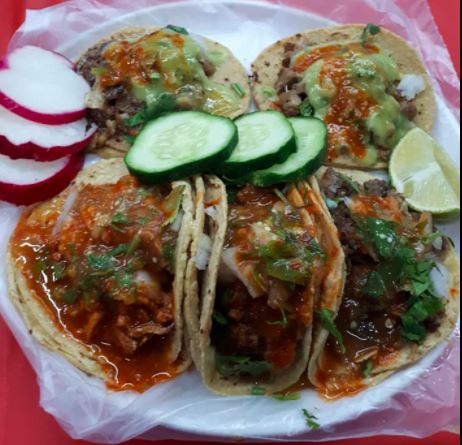 1 taco con tortilla de maíz (taquera), carne de 30gr, verduras y salsa.