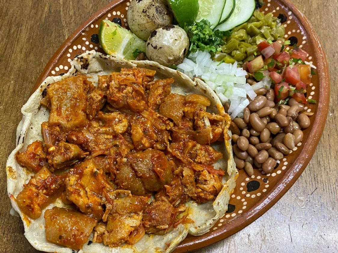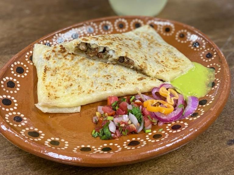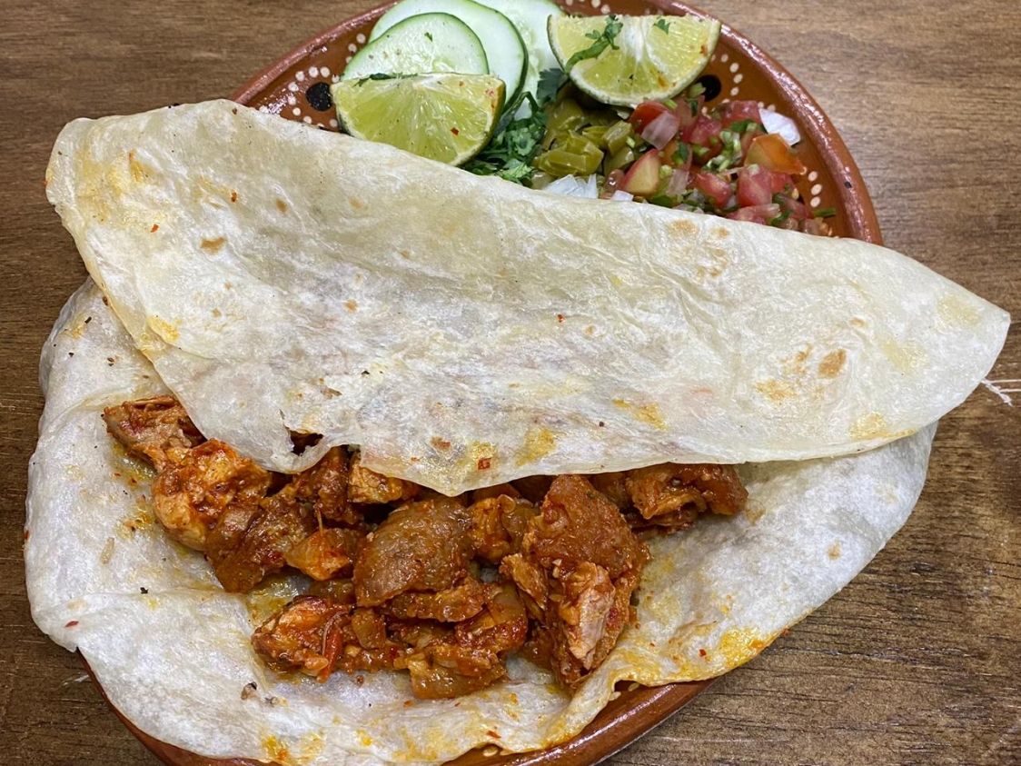 Quesadilla de Harina de Chicharrón en Salsa Roja