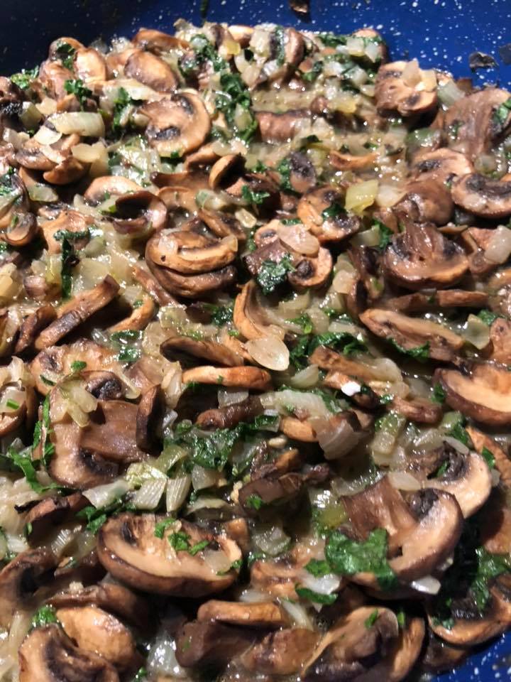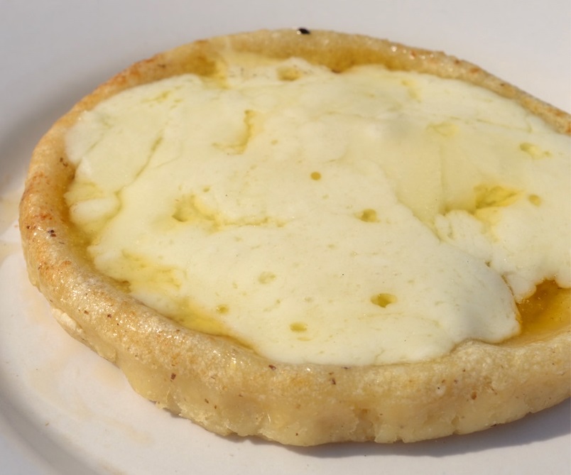 Pallizcada con queso y guiso de champiñones (opción vegetariana).