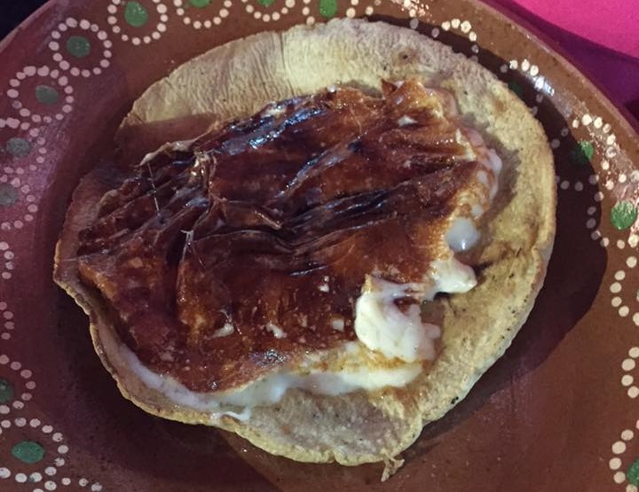 Quesadilla de Maíz de Chicharrón en Salsa Roja