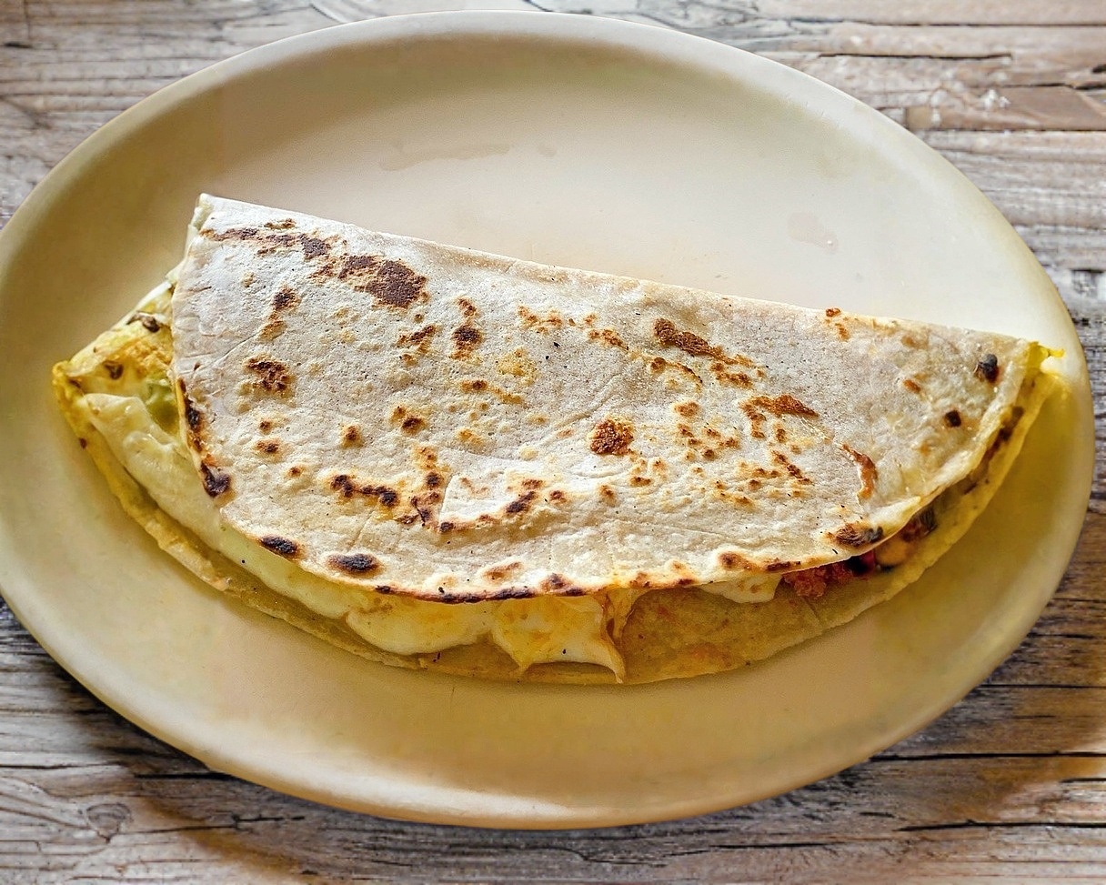 Quesadilla con Chicharrón de Tortilla Recién Hecha
