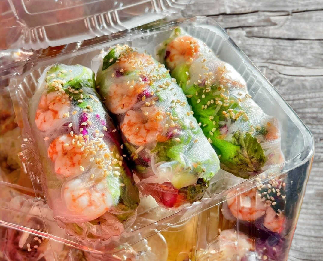 3 Rollos vietnamitas rellenos de vegetales, noodles de arroz y surimi, frescos e ideales para una comida saludable y deliciosa