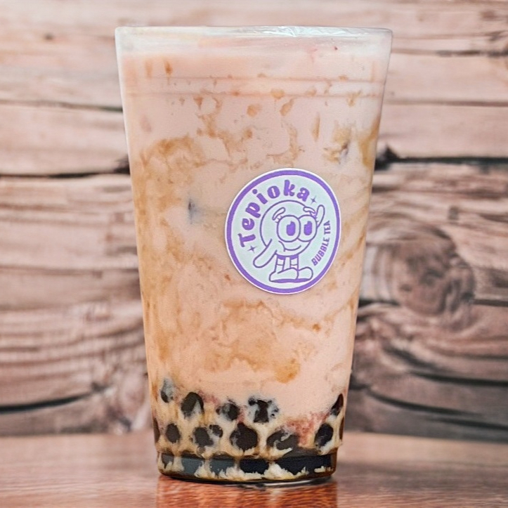 Té negro con leche y fresa a las rocas más topping a elección (16oz - 437ml)