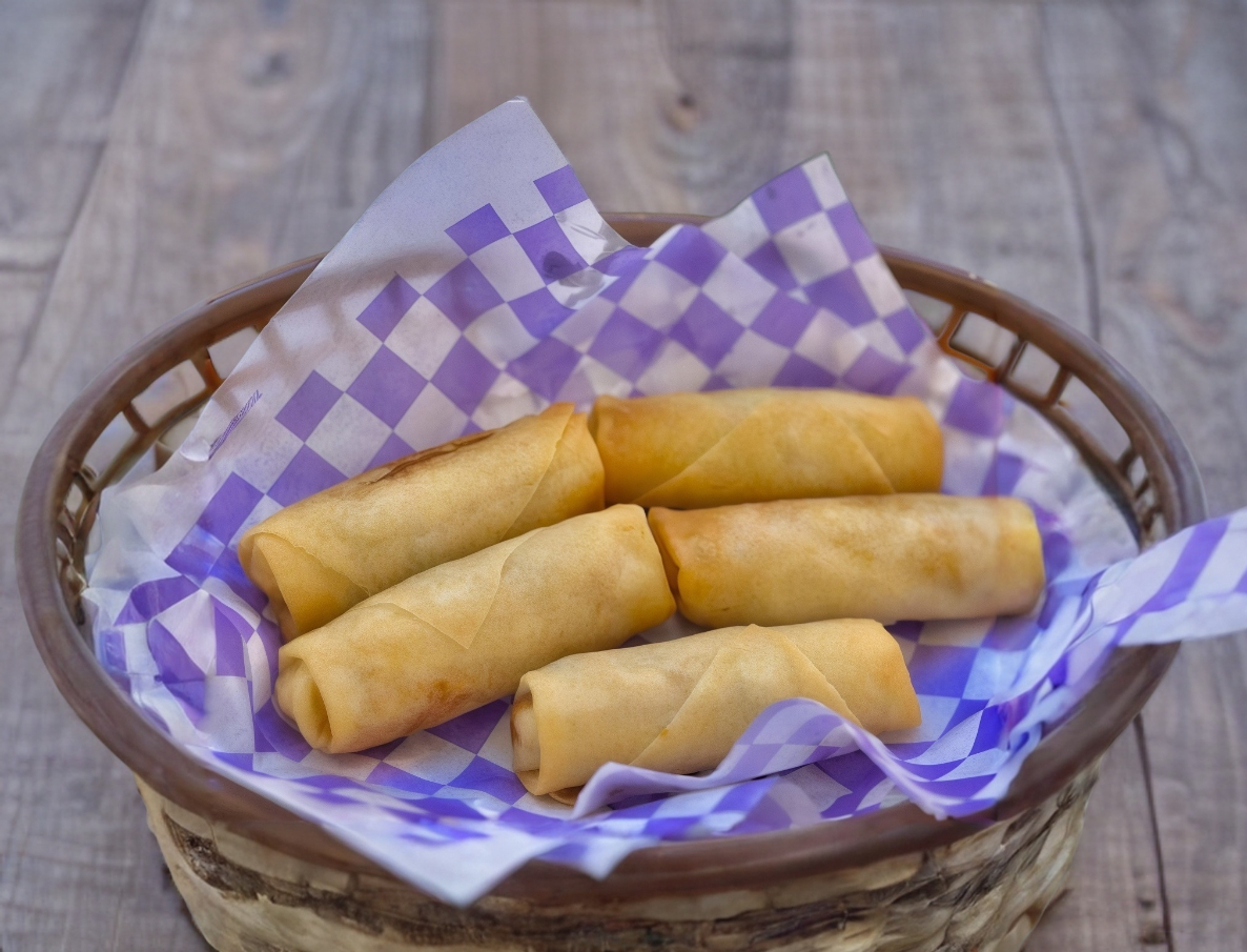 Orden de 5 rollitos primavera fritos rellenos de vegetales incluye salsa soya y siracha