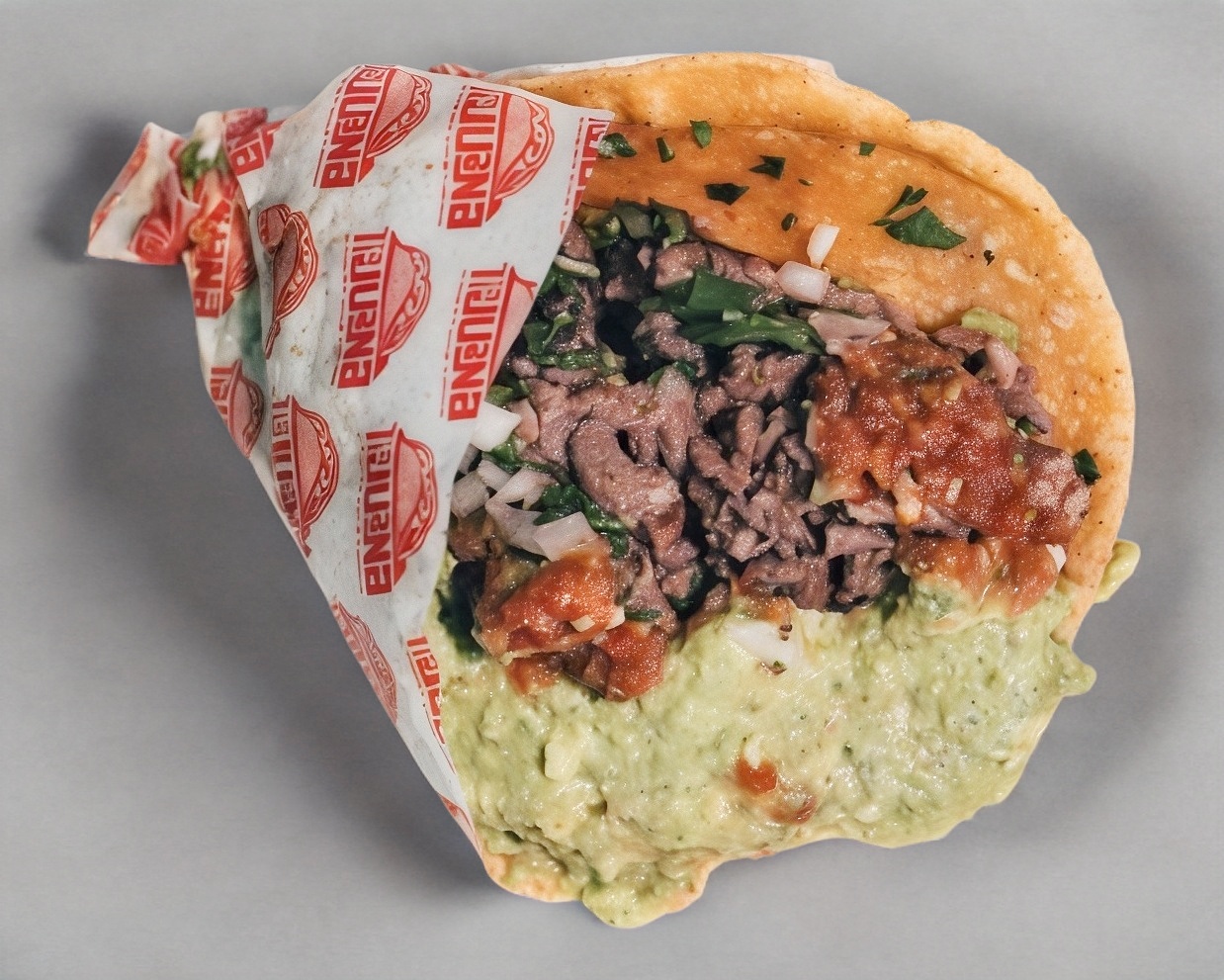 QUESADILLA CON TORTILLA DE HARINA, CON QUESO CHEDDAR, CARNE ADOBADA, CILANTRO, CEBOLLA Y GUACAMOLE