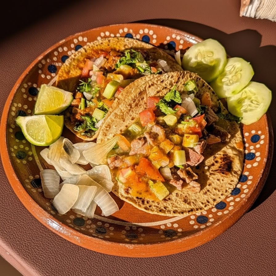 Tacos con tortilla hecha a mano. Sabor auténtico en cada bocado.🌮
