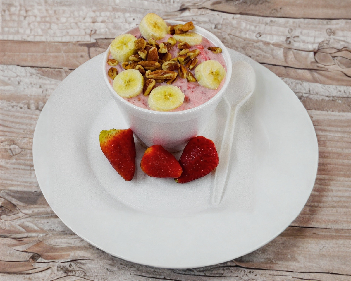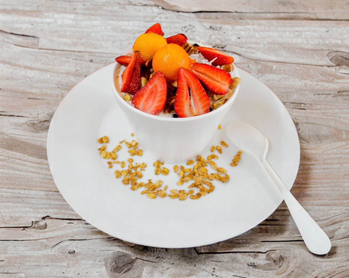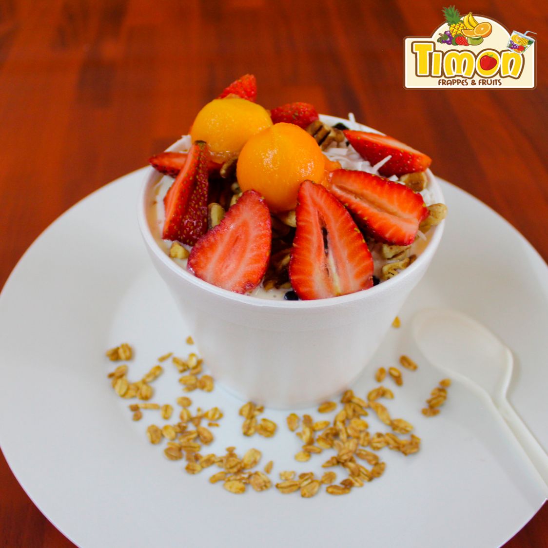 Fresa,papaya,manzana,plátano,melón yogurth natural miel cereales avena tostada,coco,pasas y nuez