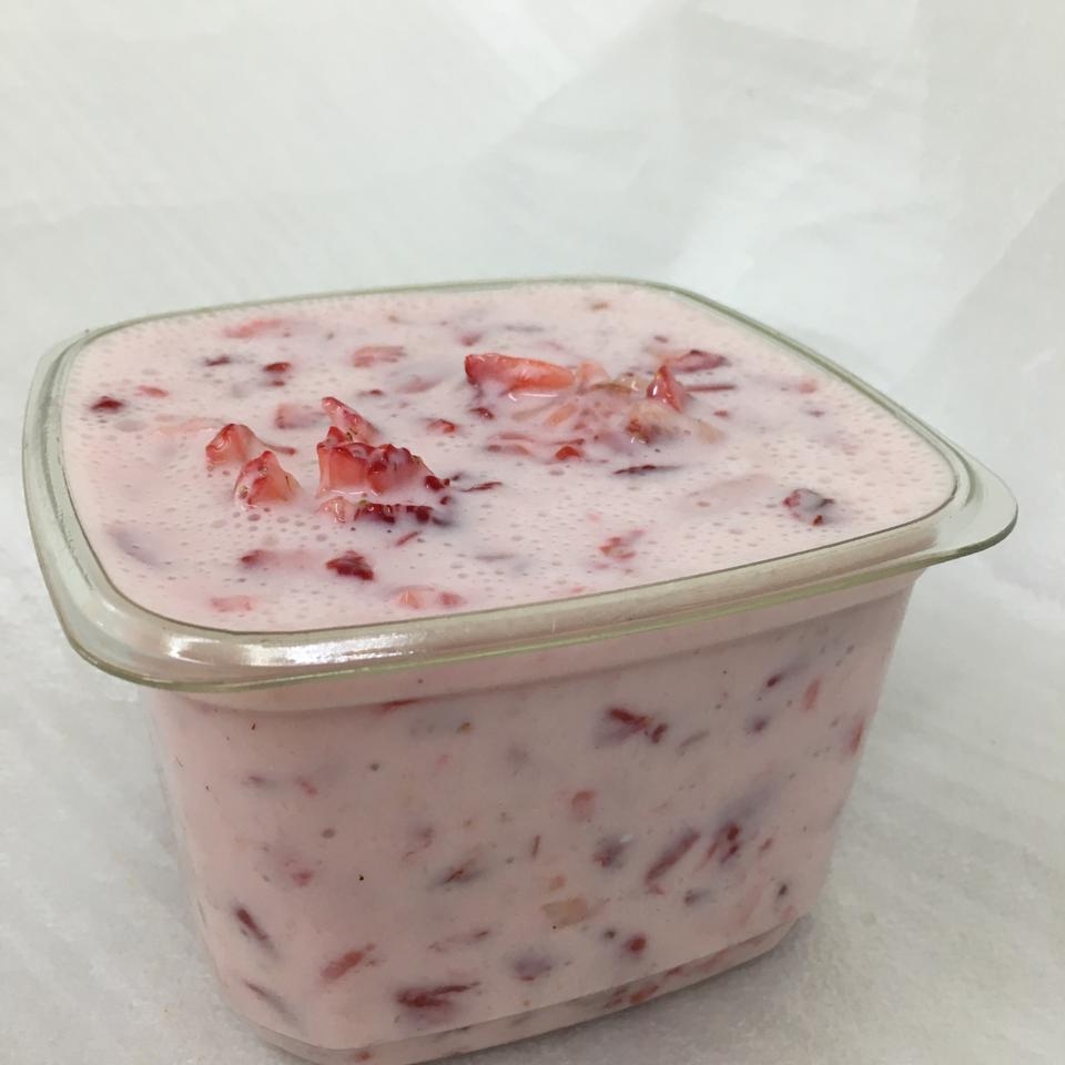 Fresa,papaya,plátano,melón,manzana crema dulce cereales avena tostada,coco,pasas y nuez