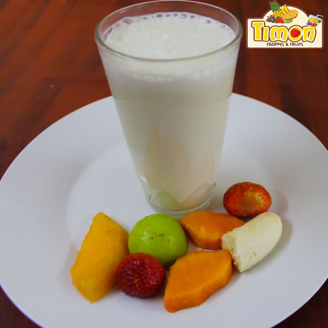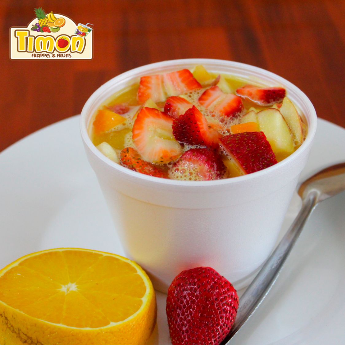 Fresa,plátano,manzana,papaya,melón jugo de naranja