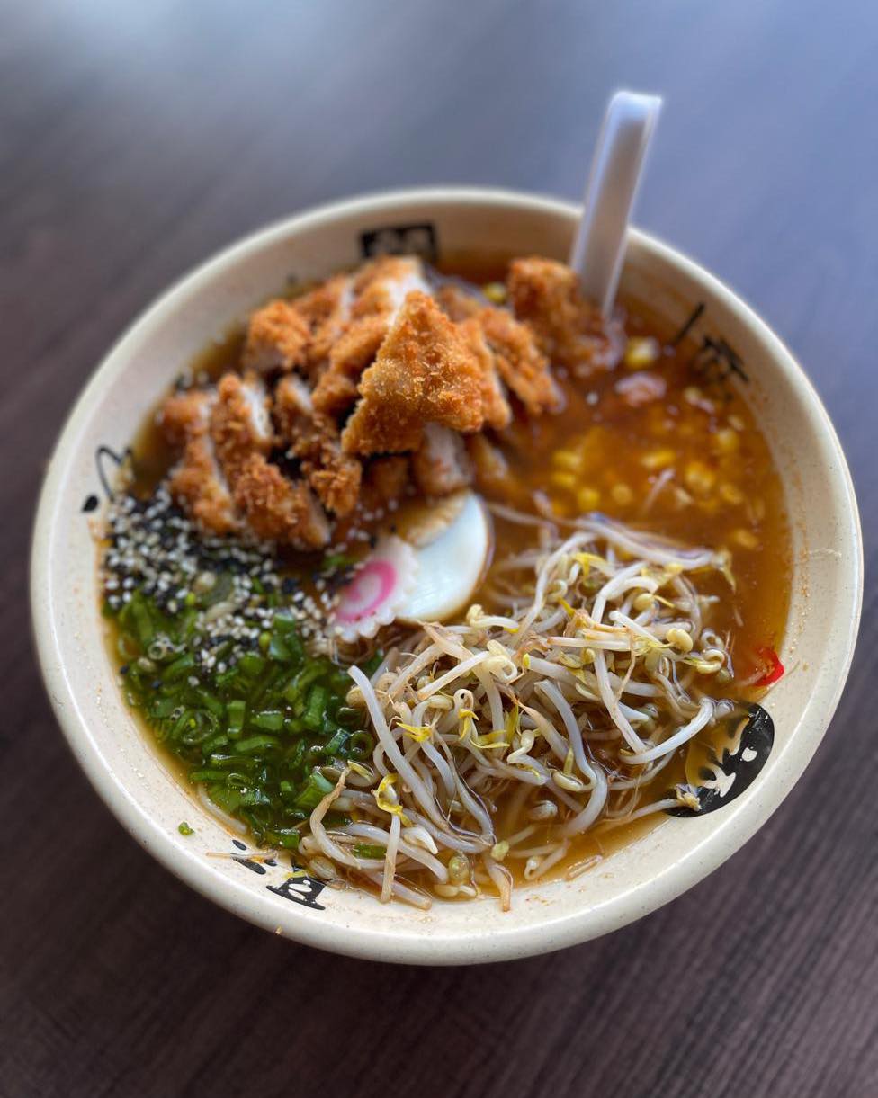 Caldo Tonkotsu aromatizado con mantequilla, servido con deliciosa chuleta de cerdo empanizada.