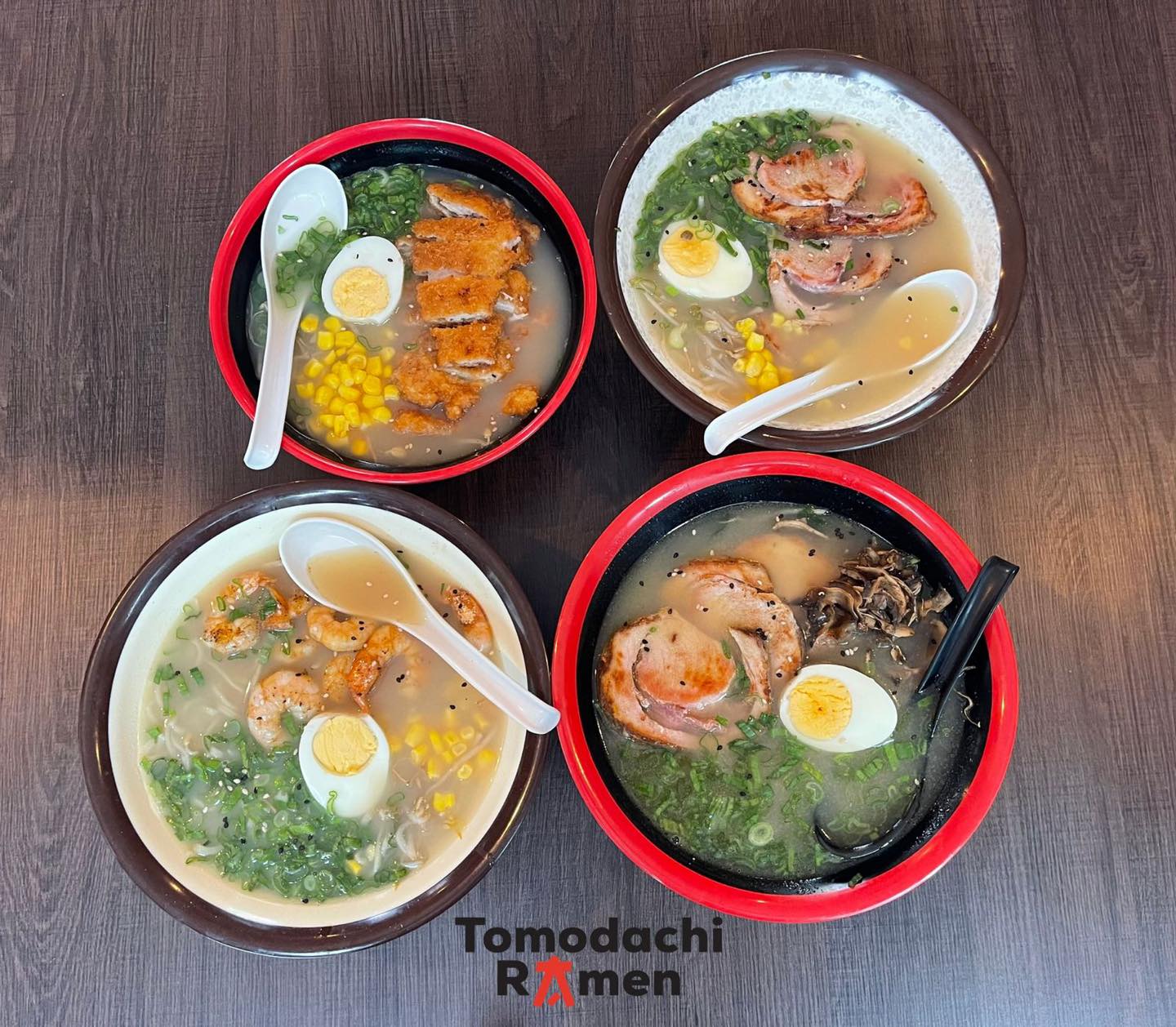 Caldo Tonkotsu aromatizado con mantequilla, servido con deliciosos camarones.