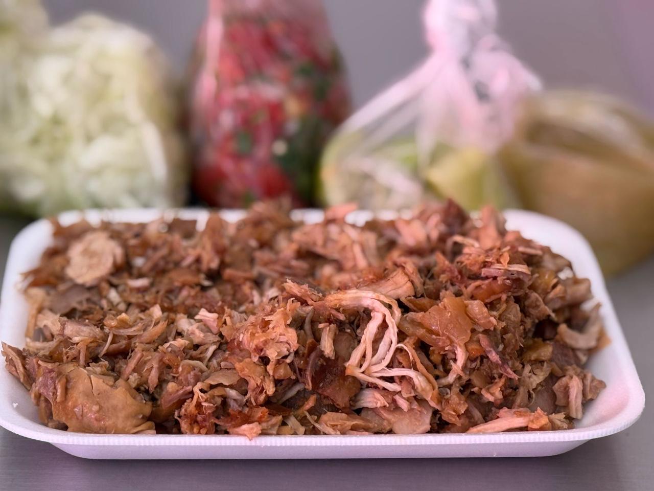Taco con tortilla de maíz y carne.