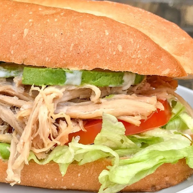 Pierna, aguacate, jitomate, lechuga, cebolla y aderezo chipotle.