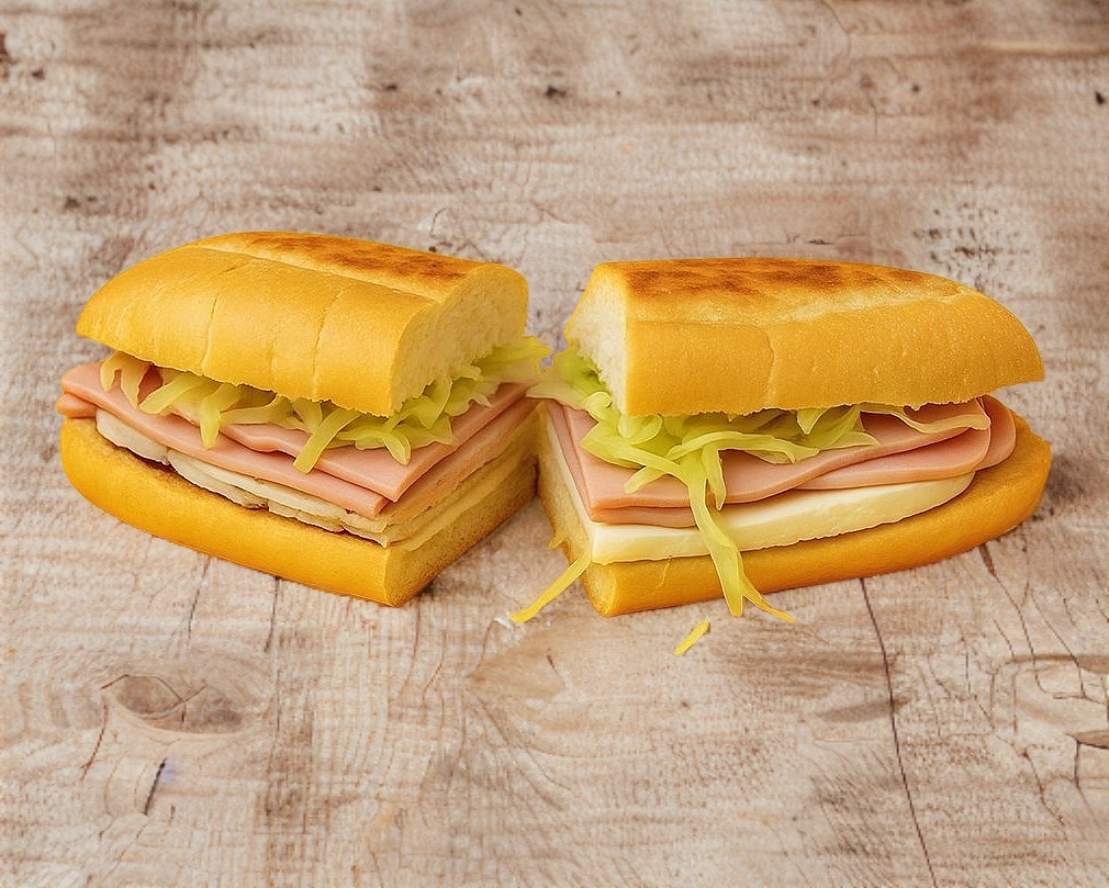 Sandwich con Rebanadas de jamón de cerdo de la mas alta calidad con los ingredientes mas frescos.