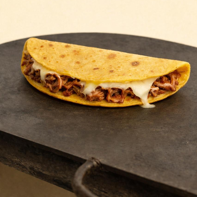 Quesadilla con Birria, con tortilla de maíz hecha a mano