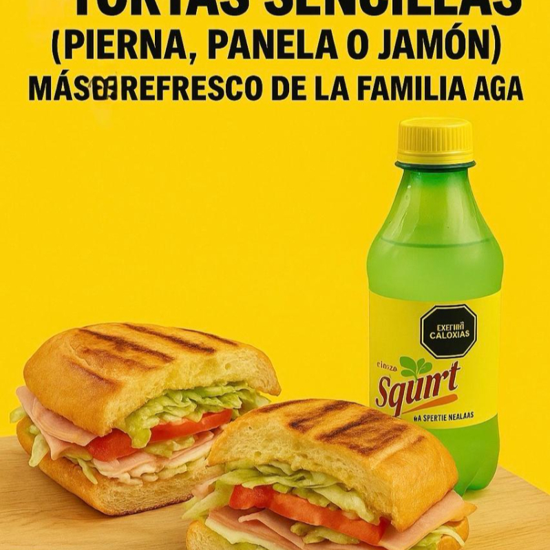 Torta Jamón*2 + Squirt Toronja 600 ml*3 + Torta Pierna Copiar*2
