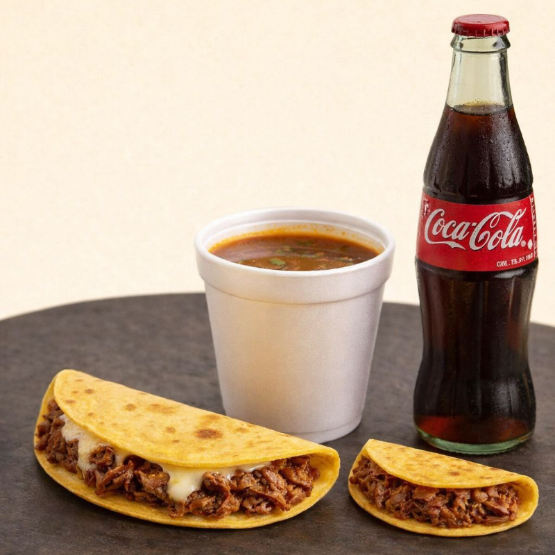 Quesabirria*1 + Taco de Birria*1 + Consomé*1 + Coca Cola 600 ml*1