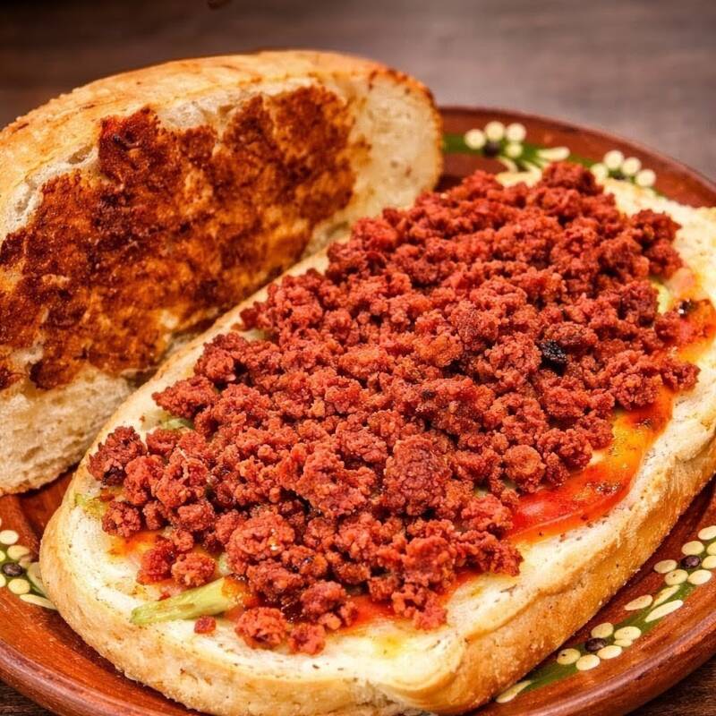 TROCITOS DE MILANESA DE CERDO,CHORIZO CASERO,QUESO OAXACA