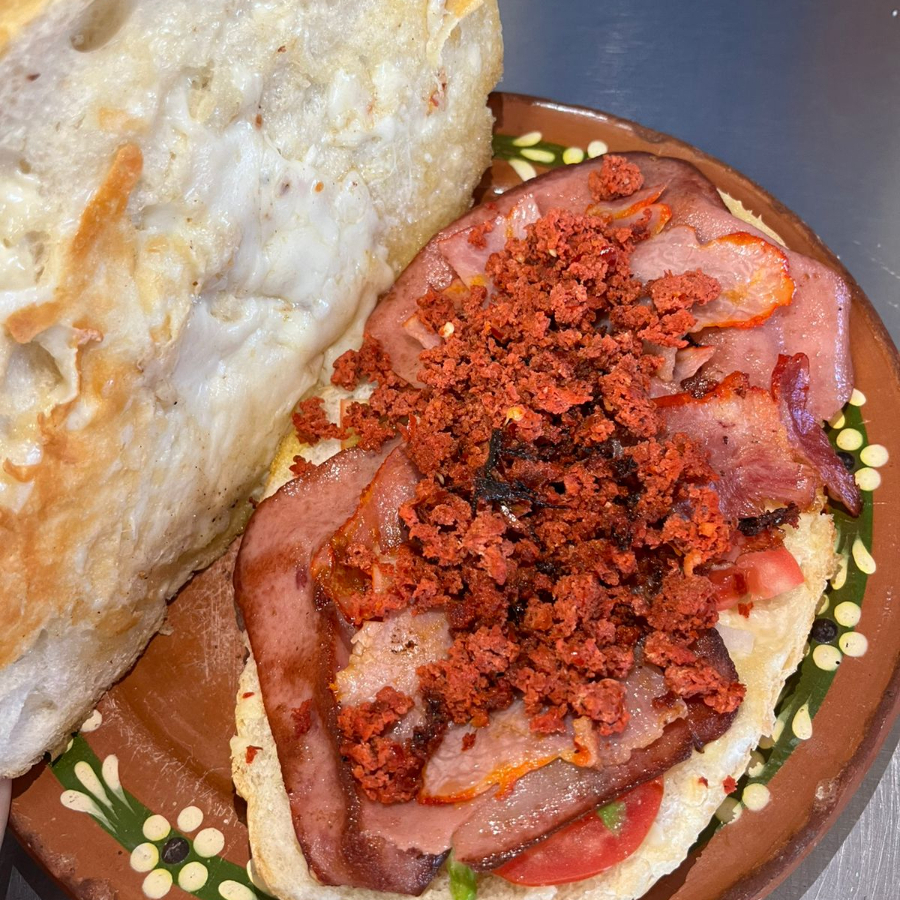 PIERNA ESPAÑOLA, HUEVO, QUESO OAXACA