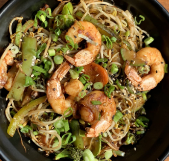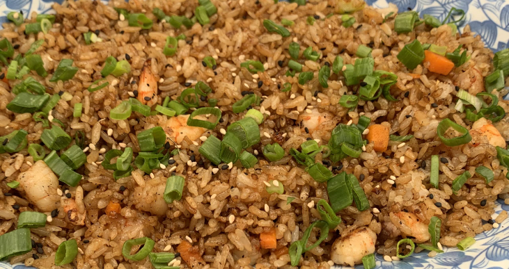 Arroz frito salteado con verduras, sazonado con salsa de soya y delicioso camarón