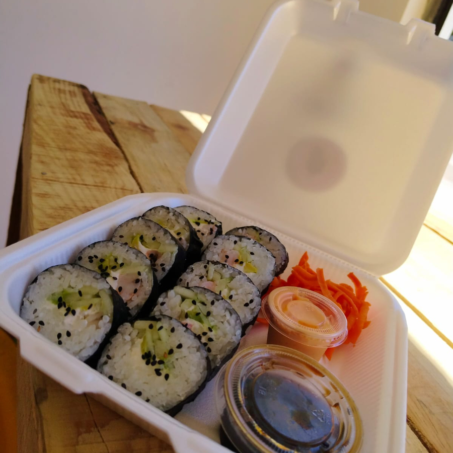 Philadelphia, pepino, camarón, aguacate, ensalada tampico y kanikama.