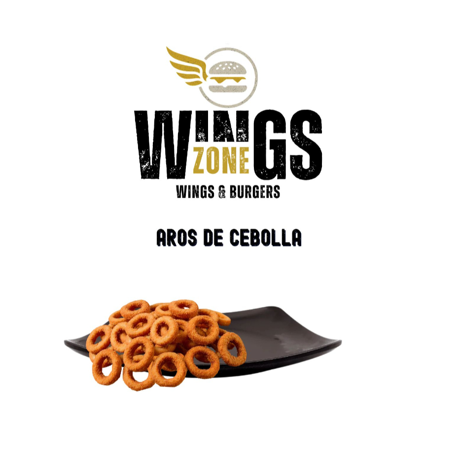 25 alitas, 5 boneless, papas a la francesa y aros de cebolla