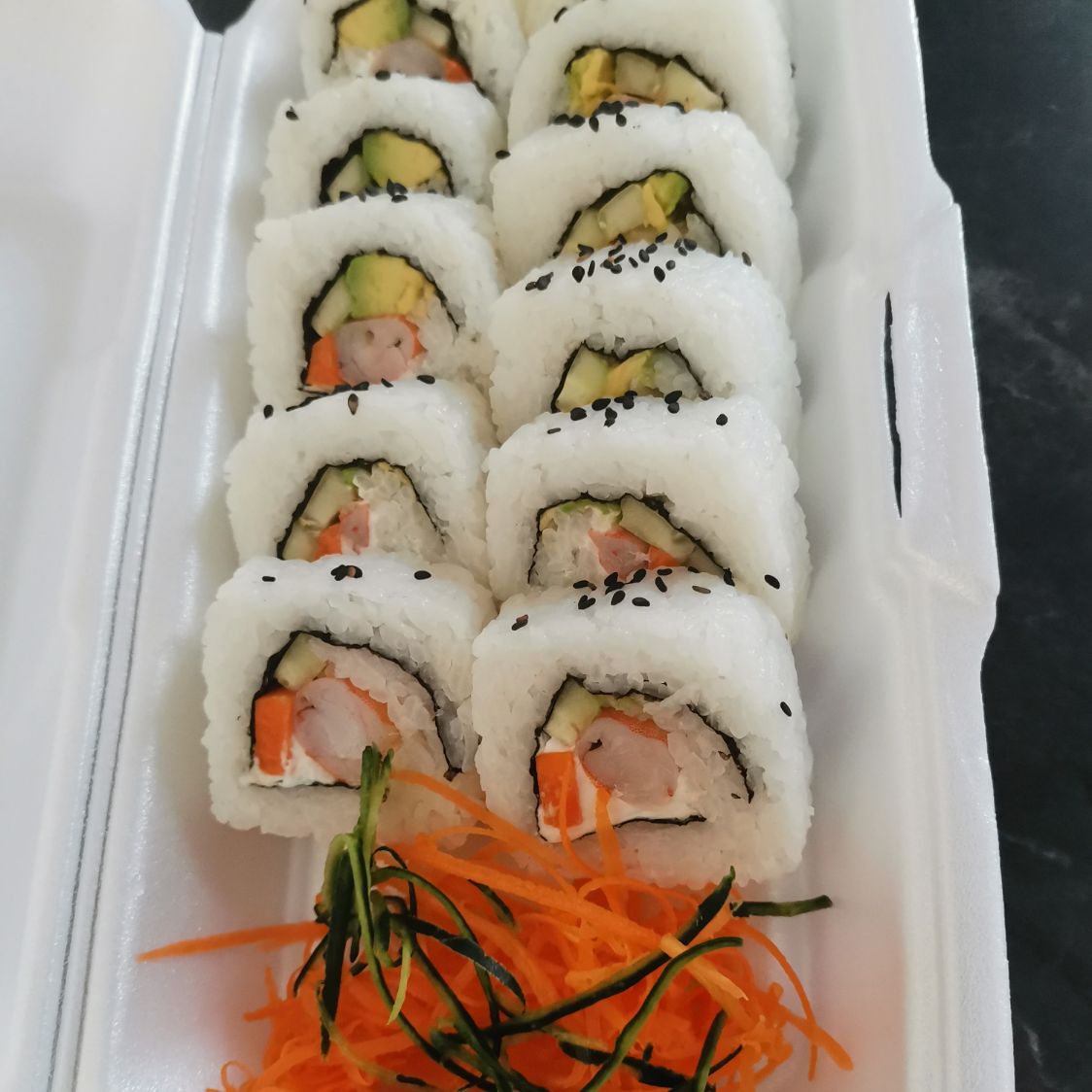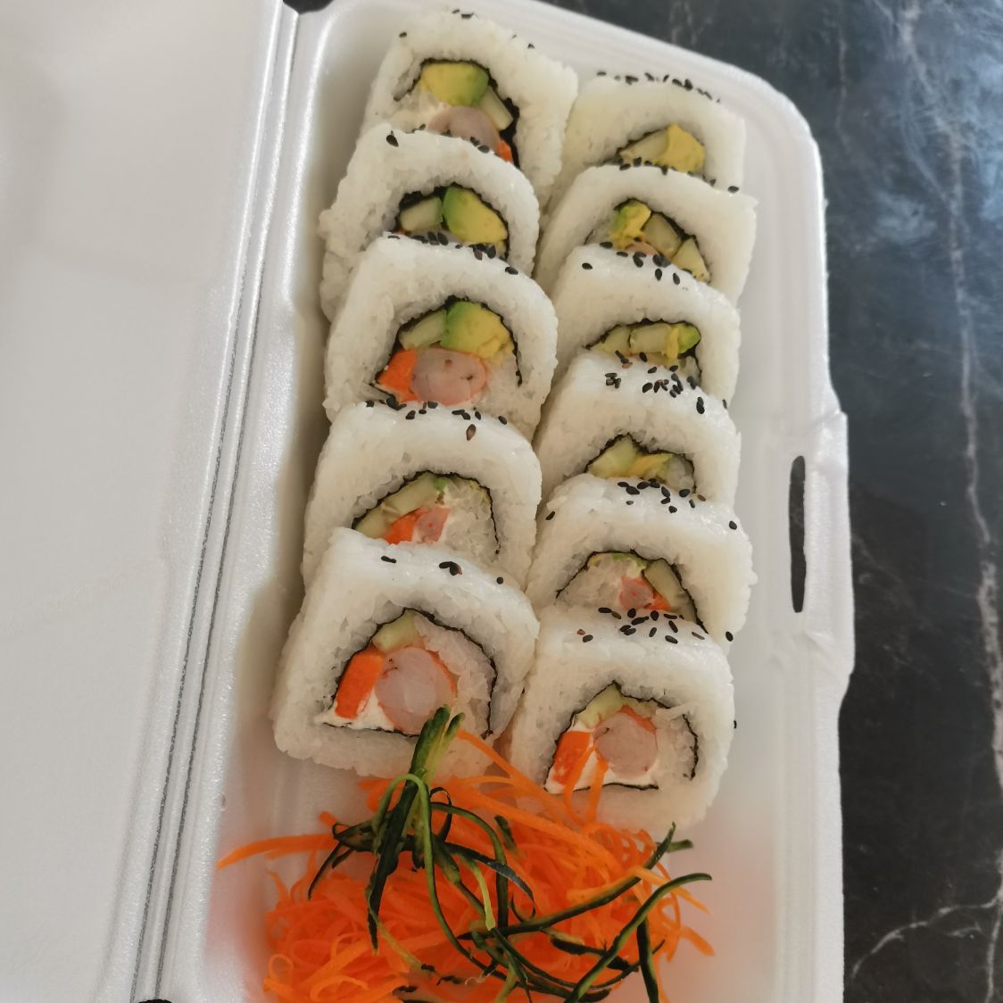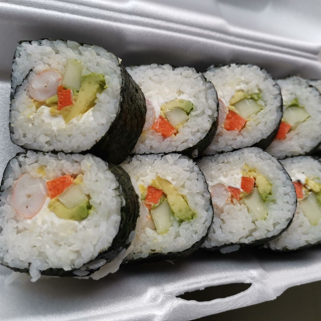Por dentro camarón, surimi o res, por fuera Filadelfia