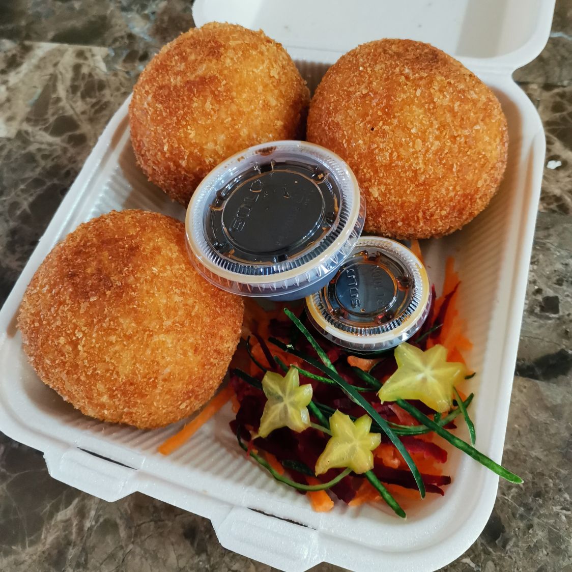 3 bolas rellenas de camarón o surimi y Filadelfia