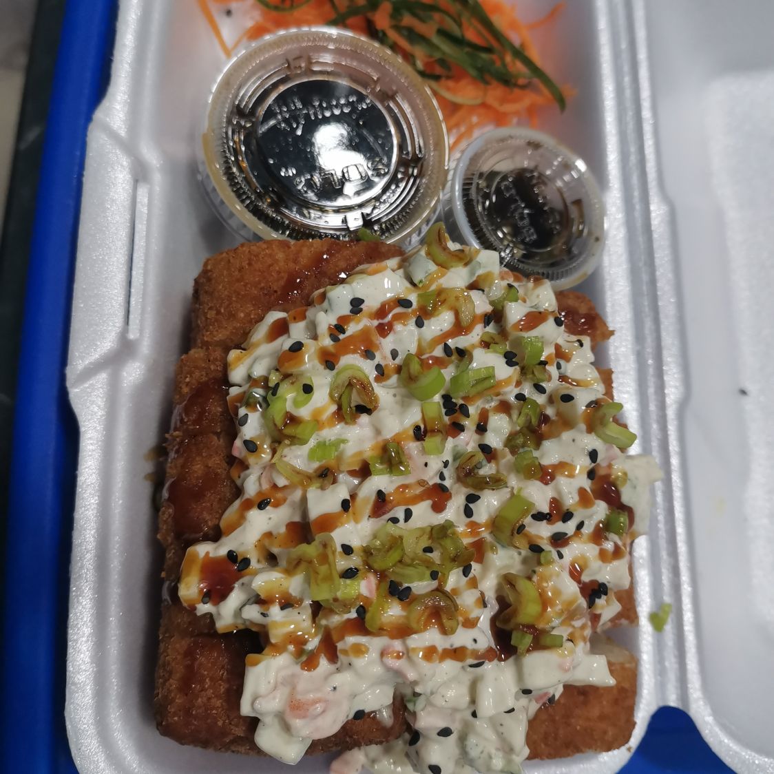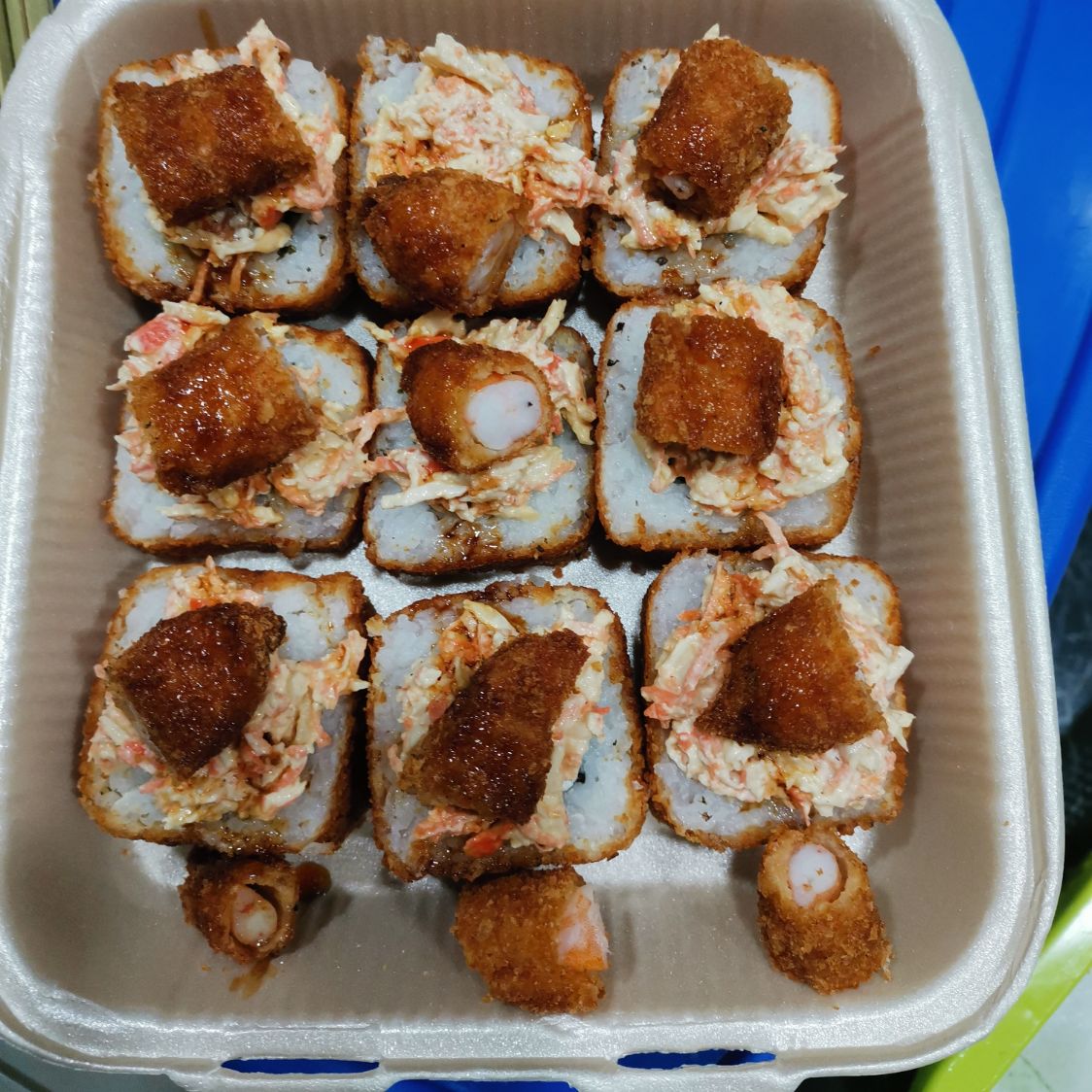 Por dentro camarón, res o surimi y por fuera Filadelfia, piña salsa de anguila y aderezo picosito