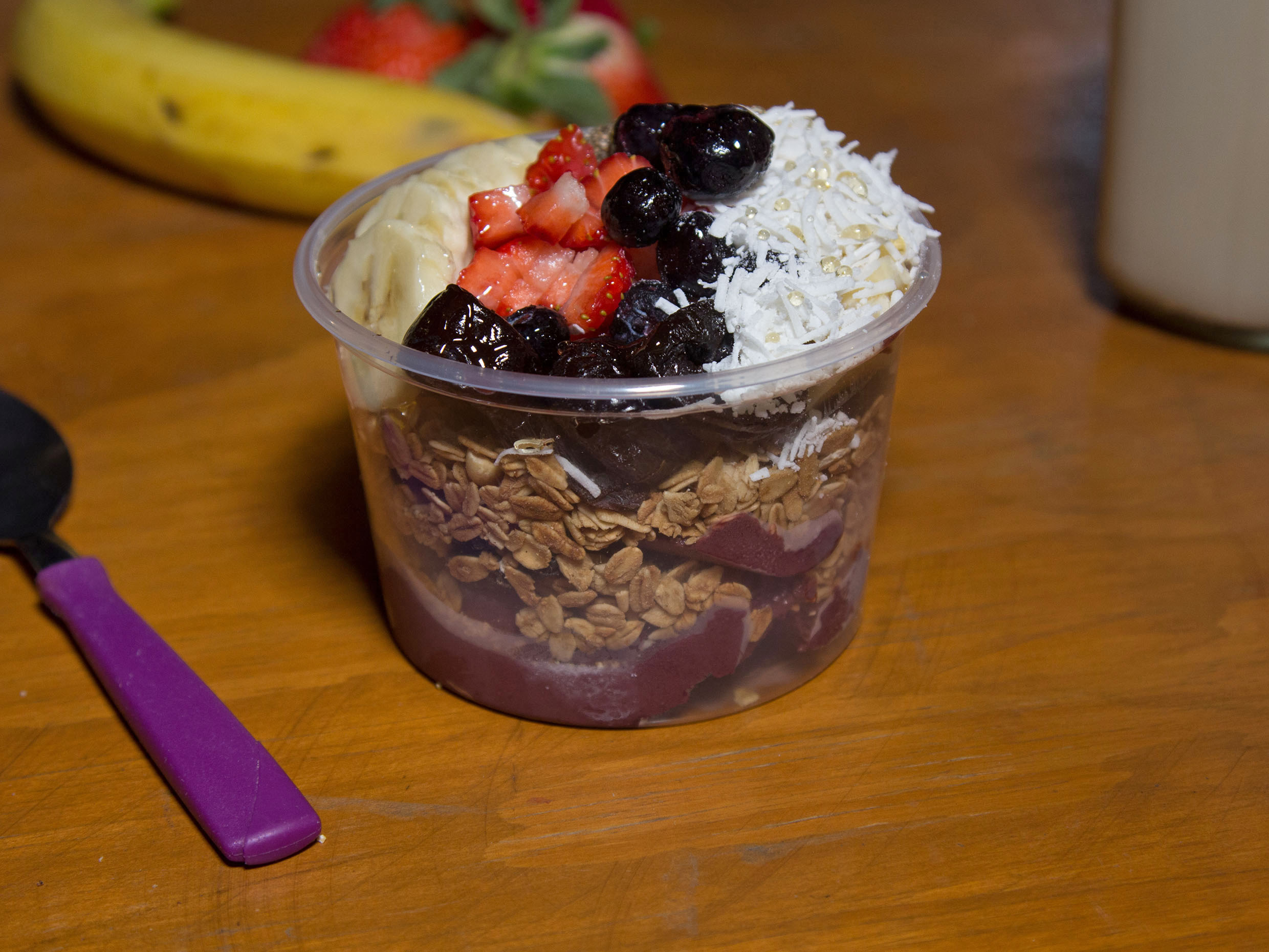Acai, granola de la casa, papaya, fresa, coco, miel